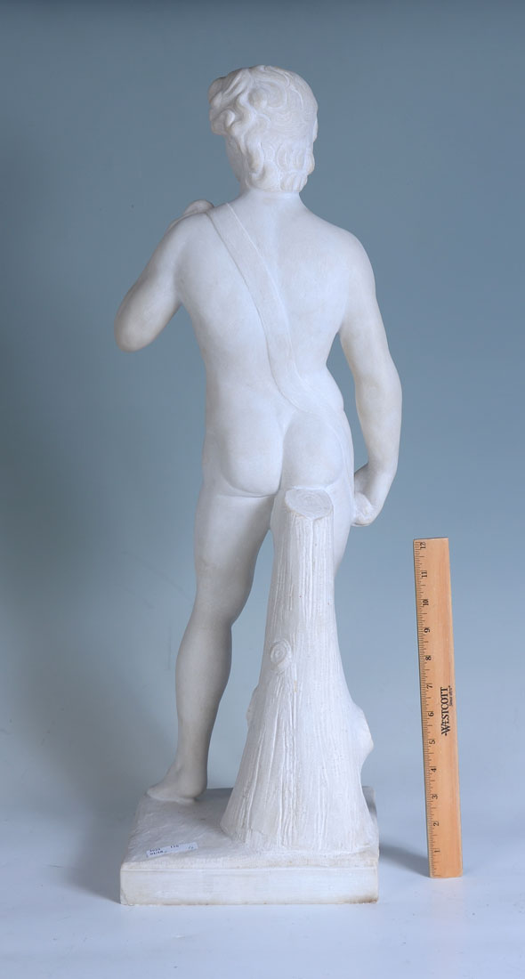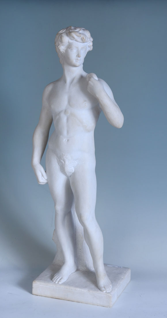 LARGE MARBLE NUDE SCULPTURE OF DAVID: 28.5'' h., good quality carving, somewhat contemporary in manufacture.