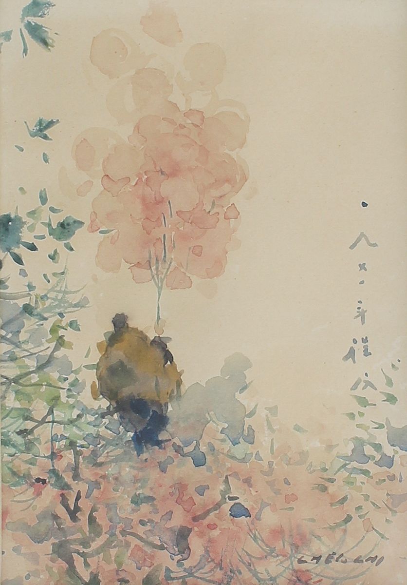 CHI, Chen, (American/Chinese, 1912-2005): Pink Blossoms, Watercolor, sight size 7'' x 5'', signed lower right, framed, 13.5'' x 11.5''.