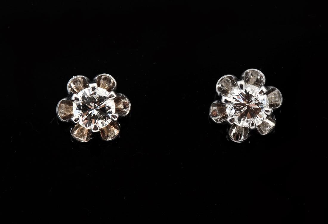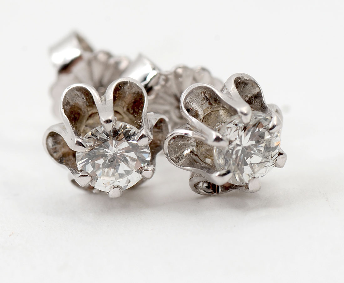 14K & DIAMOND EAR STUDS: .51 CTW diamonds are set in white gold buttercup style. Simple and clean.