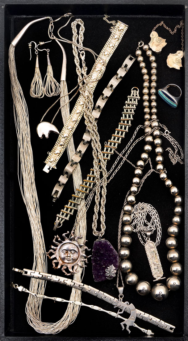 MULTI PIECE LOT OF STERLING JEWELRY: Several very nice pieces of sterling jewelry including several necklaces, bracelets, earrings and a ring. Weight approx. 10.355 Troy ounces.