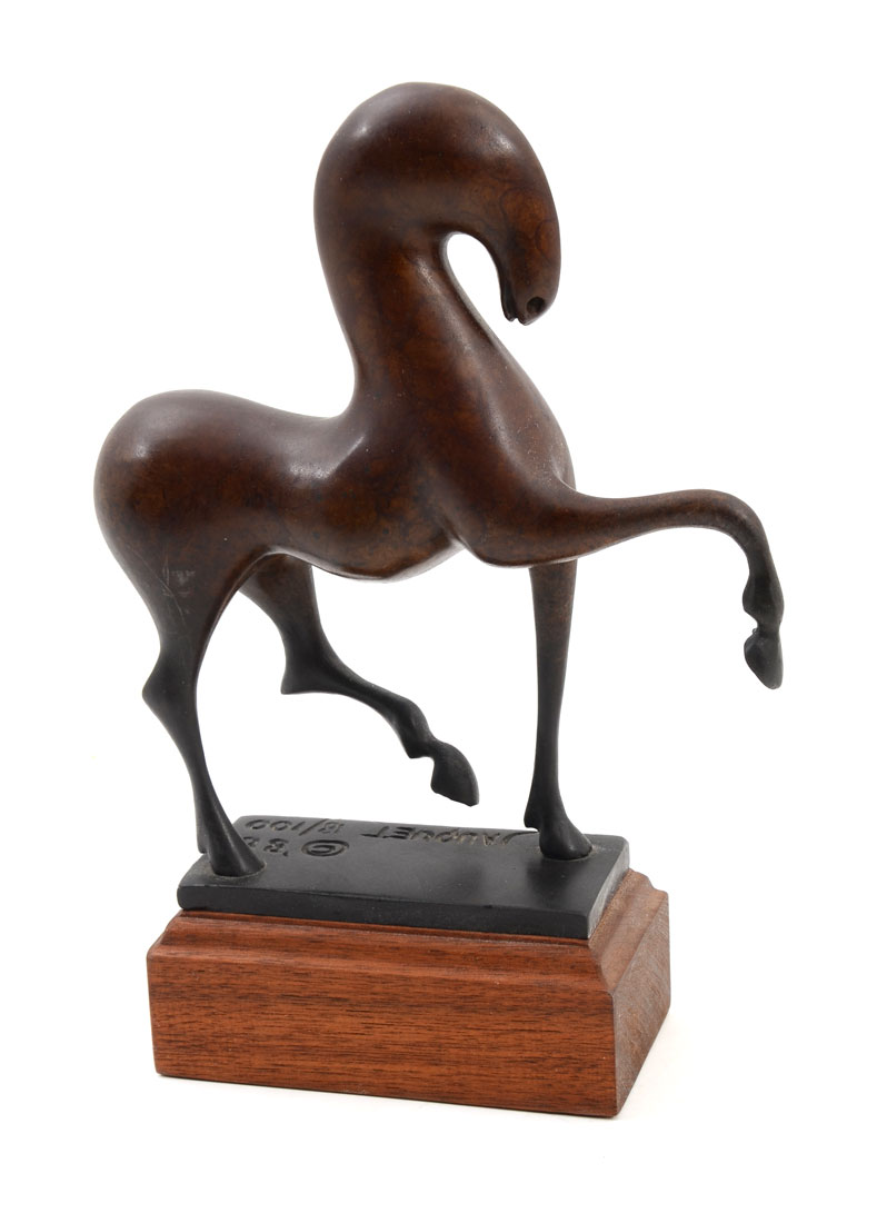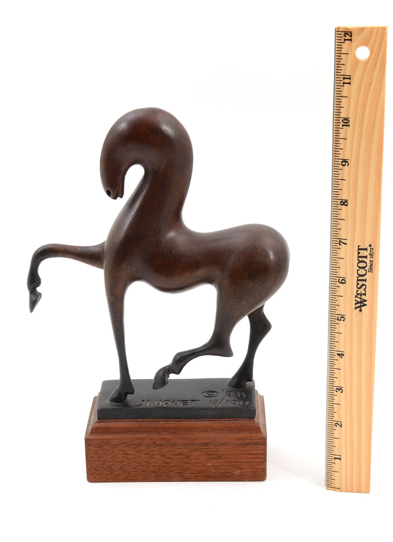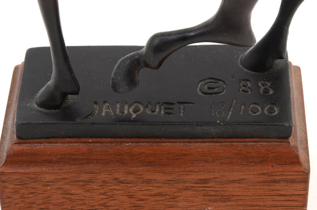 JAUQUET, William, (American, 1945-): Stallion, Bronze, 8.25'' H., signed, dated '88, numbered 18/100, affixed to wooden plinth, 10.25'' overall.