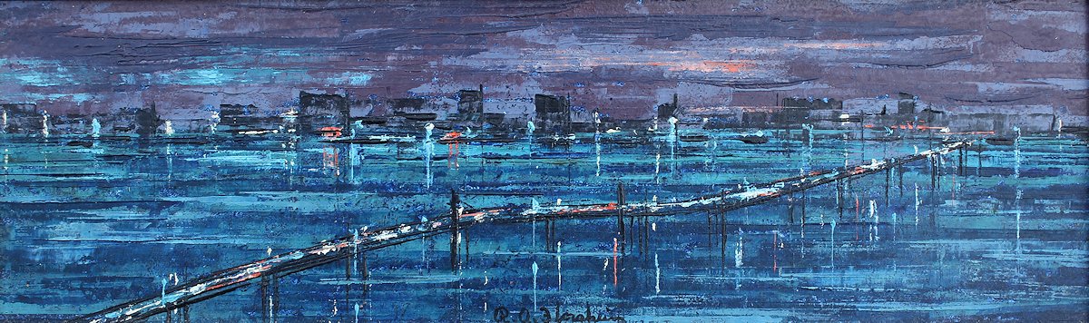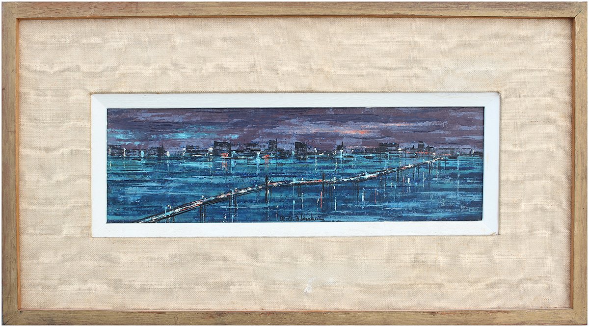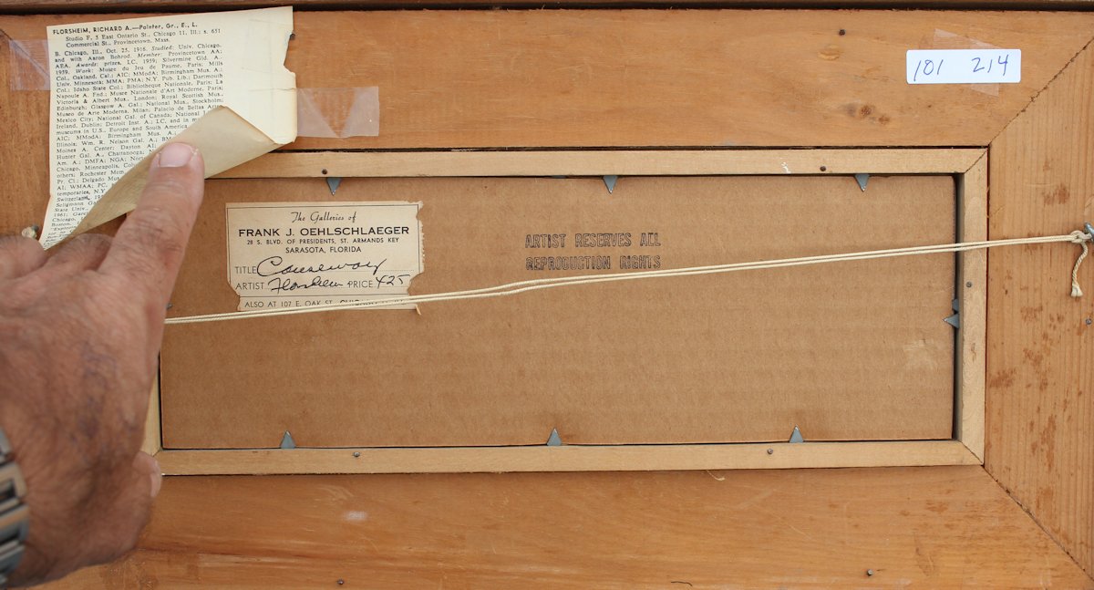 FLORSHEIM, Richard, (American, 1916-1979): ''Causeway'', Oil/Masonite, 4'' x 12'', signed in the lower margin, Frank Oehlschlaeger Gallery label verso, original frame, 9.75'' x 17.75''.