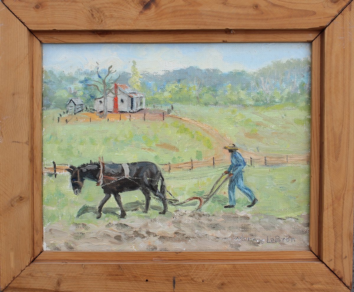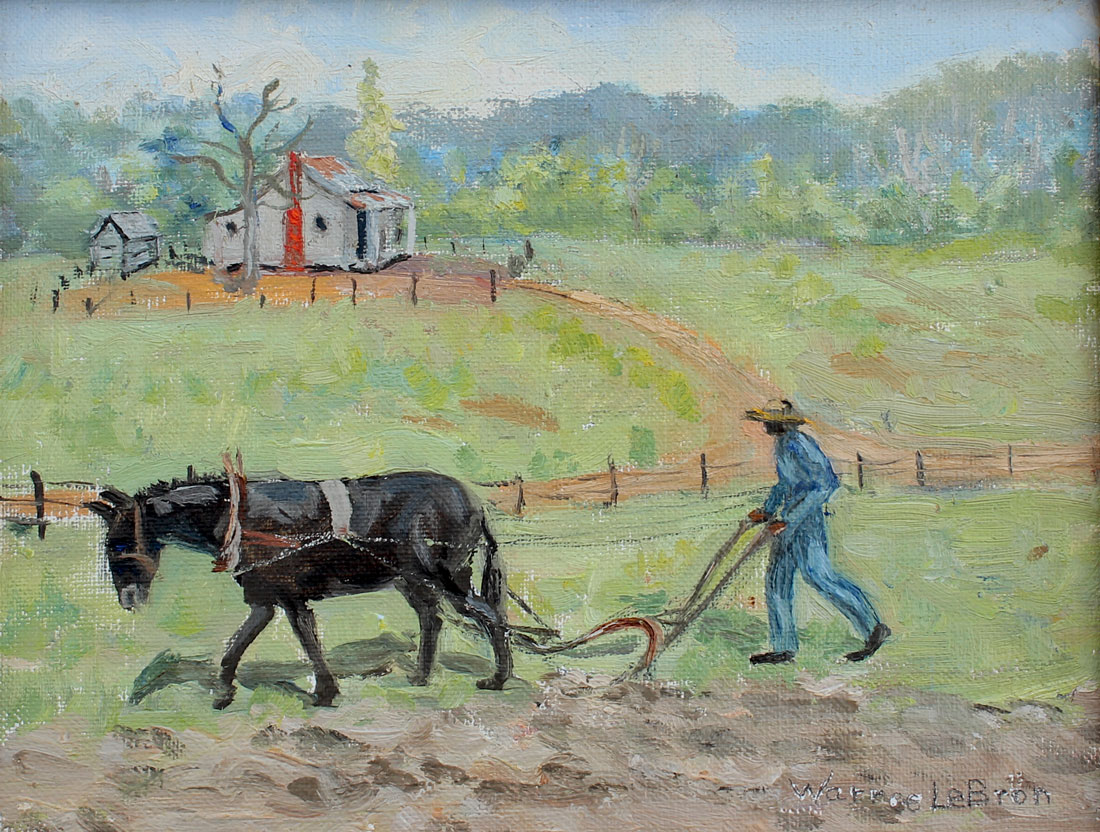 LEBRON, Warree, (American, 1910-1998): ''African American Plowing a Southern Field'', Oi/Canvas, sight size is 8'' x 10'' signed lower right, wood frame is 10.50'' x 13''