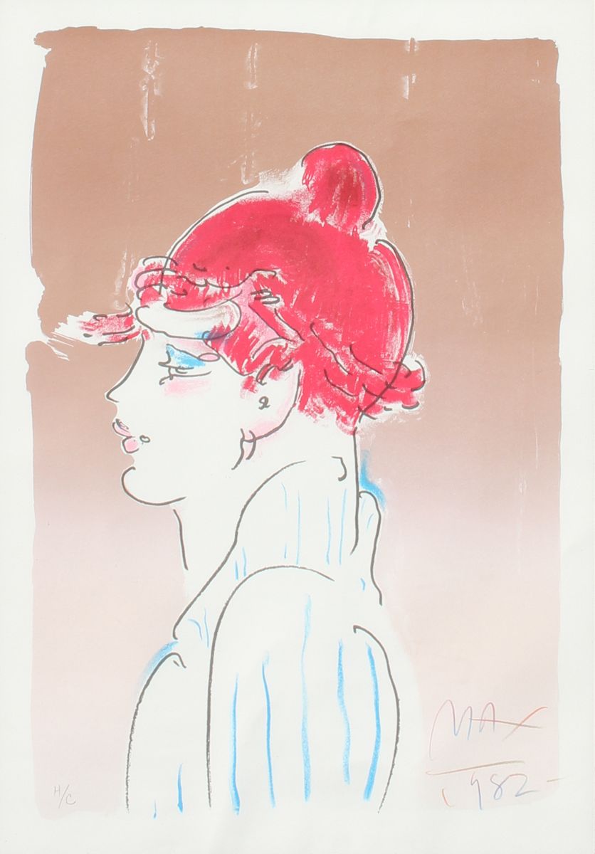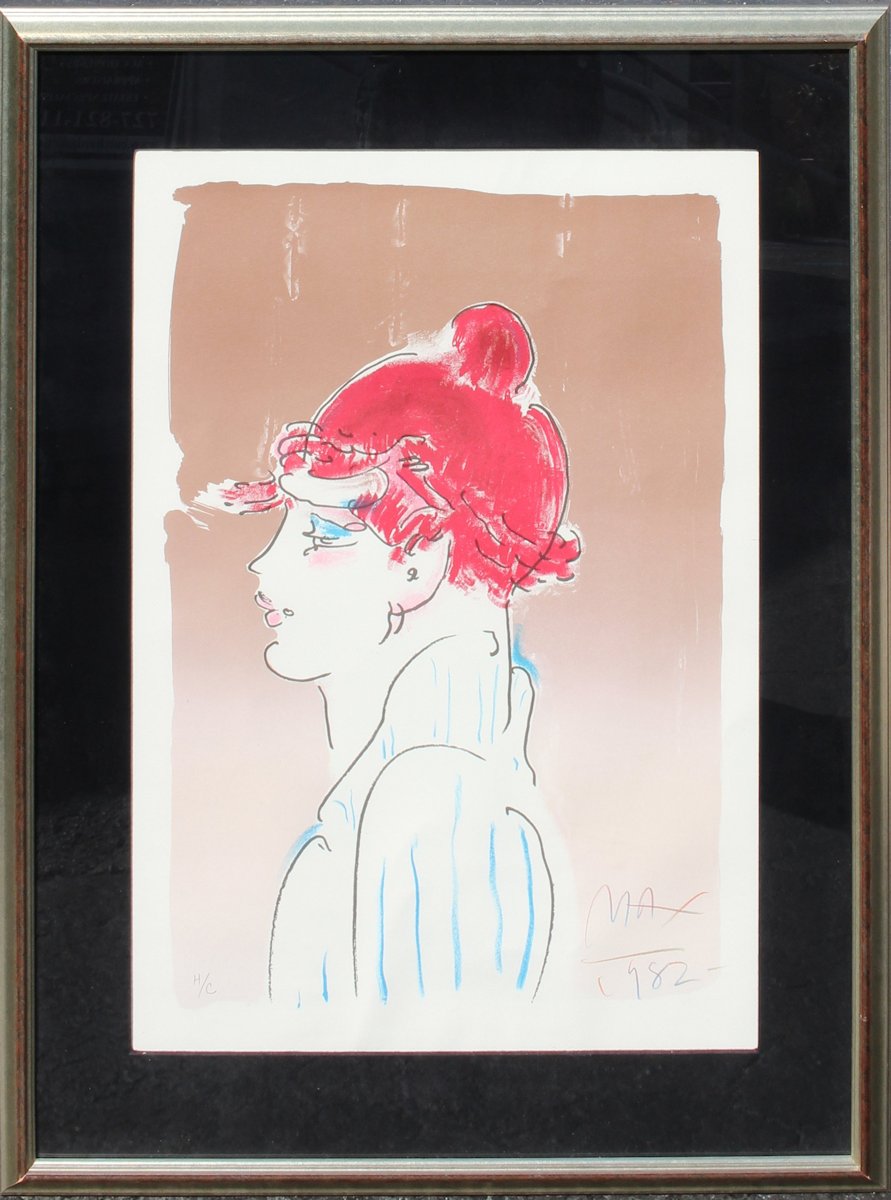 MAX, Peter, (German-America, 1937-): ''Girl From Ibiza'', H.C. Lithograph, sight size is 26.50'' x 19'', pencil signed lower right and dated 1982, marked H./C. lower left, framed 35'' x 26.50''.