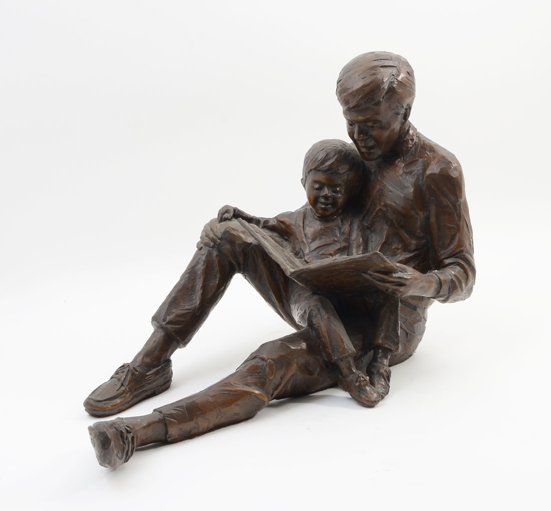 PRICE, Gary, (American, 1958- ): ''Father and Son Reading a Book'', Bronze, 12'' in height x 17.50'' in depth, signed, dated and numbered verso 38 of 95.