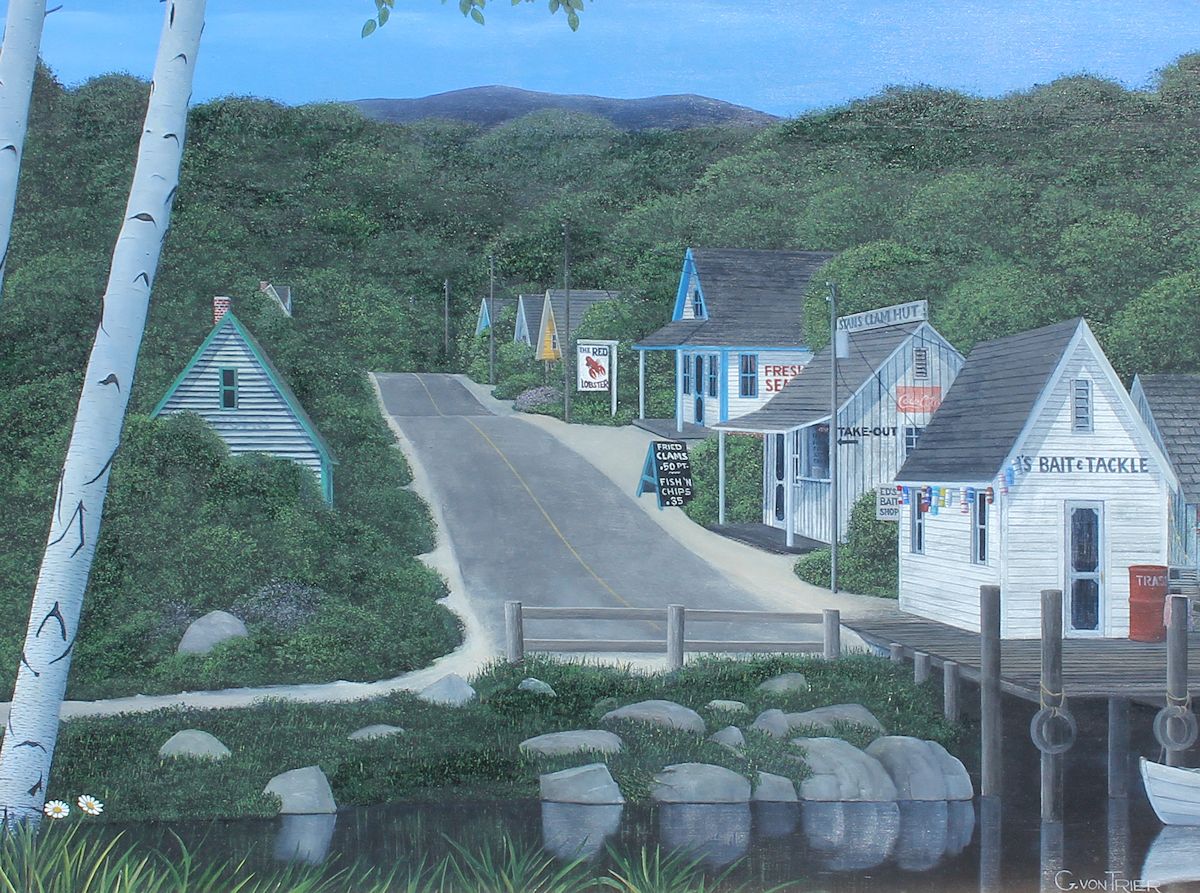 VON TRIER, G. (American 20th Century): ''Ed's Bait Shop'', Oil/Masonite, 12'' x 16'', signed lower right, titled verso, framed 20 1/2'' x 24''.