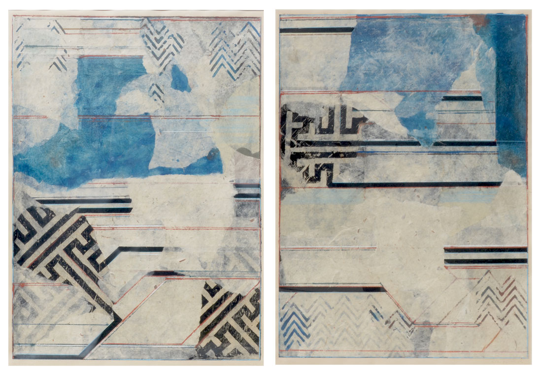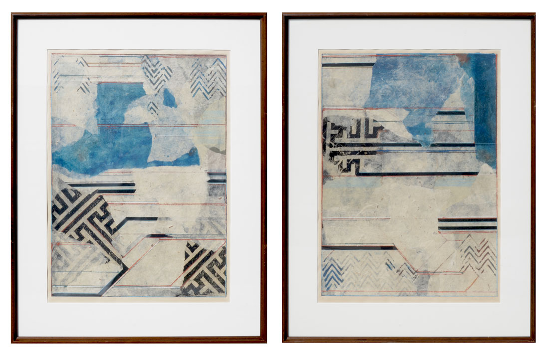 KELLY, Robert, (American, 1956-): Two Part Mixed Media and Collage, titled lower left ''72 82'', each piece measures 31'' x 22.50'', signed lower right and titled lower left, both pieces are framed 42.50'' x 33''.