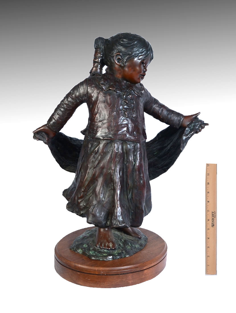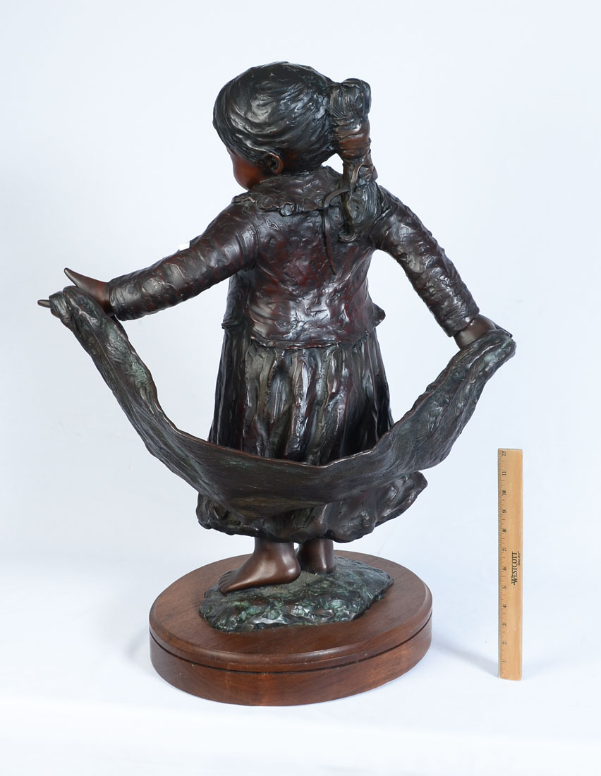 TOSCANO, Dee, (American, 1932-): ''Wind Dancer'', Patinated Bronze, 28.50'' in height, affixed to a Lazy Susan style wooden plinth, 30'' overall, signed titled and numbered 10 of 25.