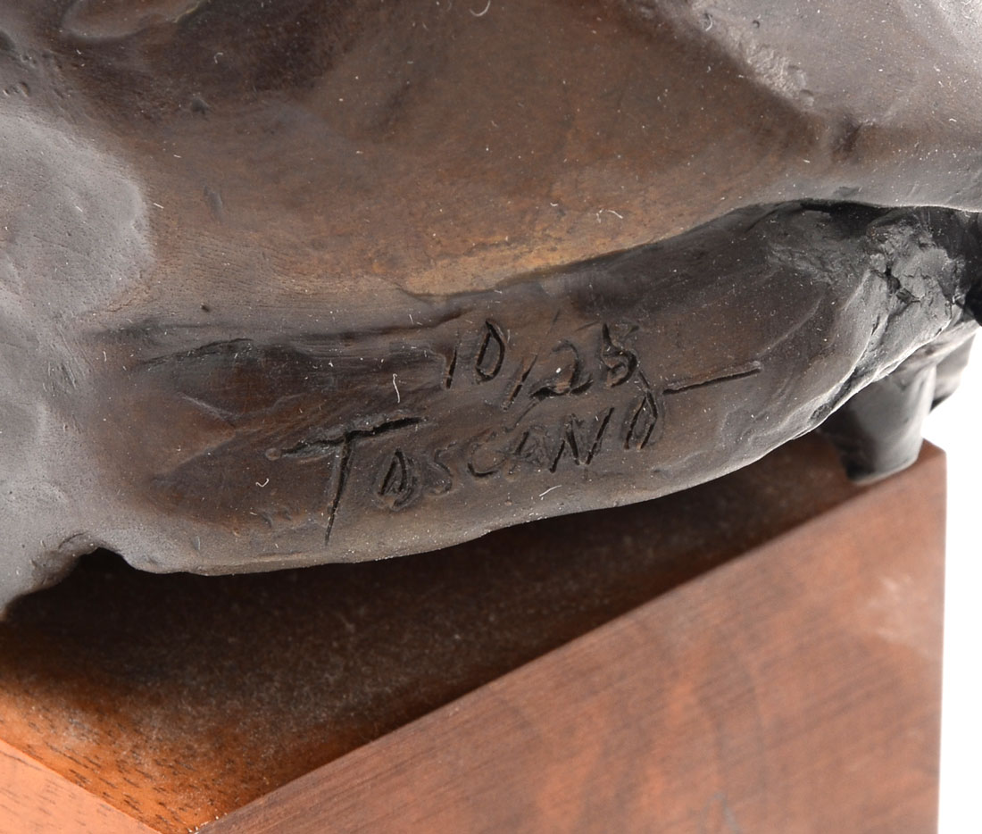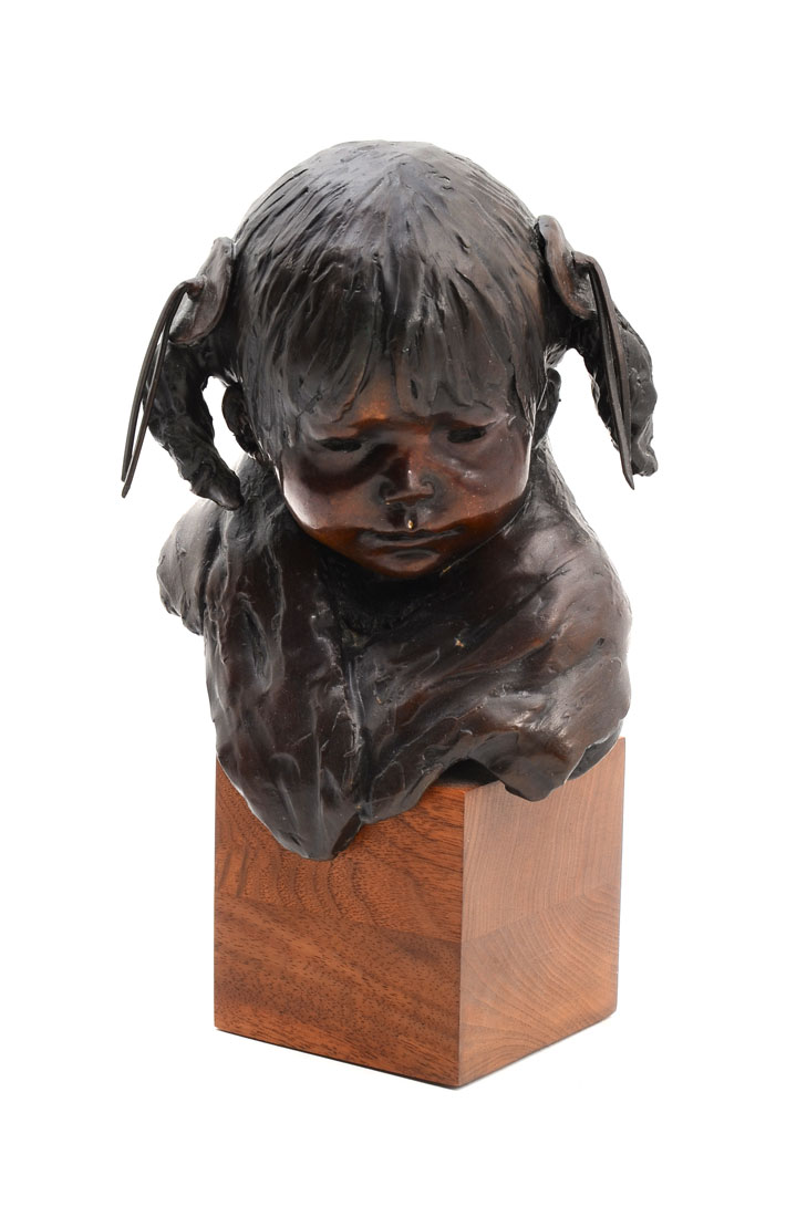 TOSCANO, Dee, (American, 1932-): ''Young Indian Girl'', Bronze, bust is 8'' in height, signed and numbered 10 of 25, affixed to a wooden plinth, height is 10'' overall.