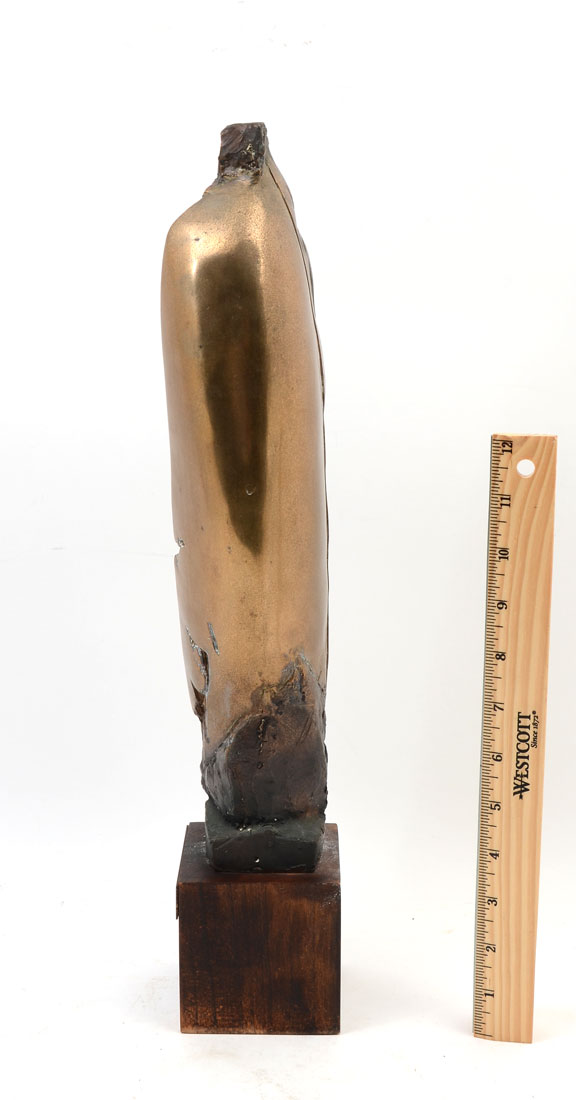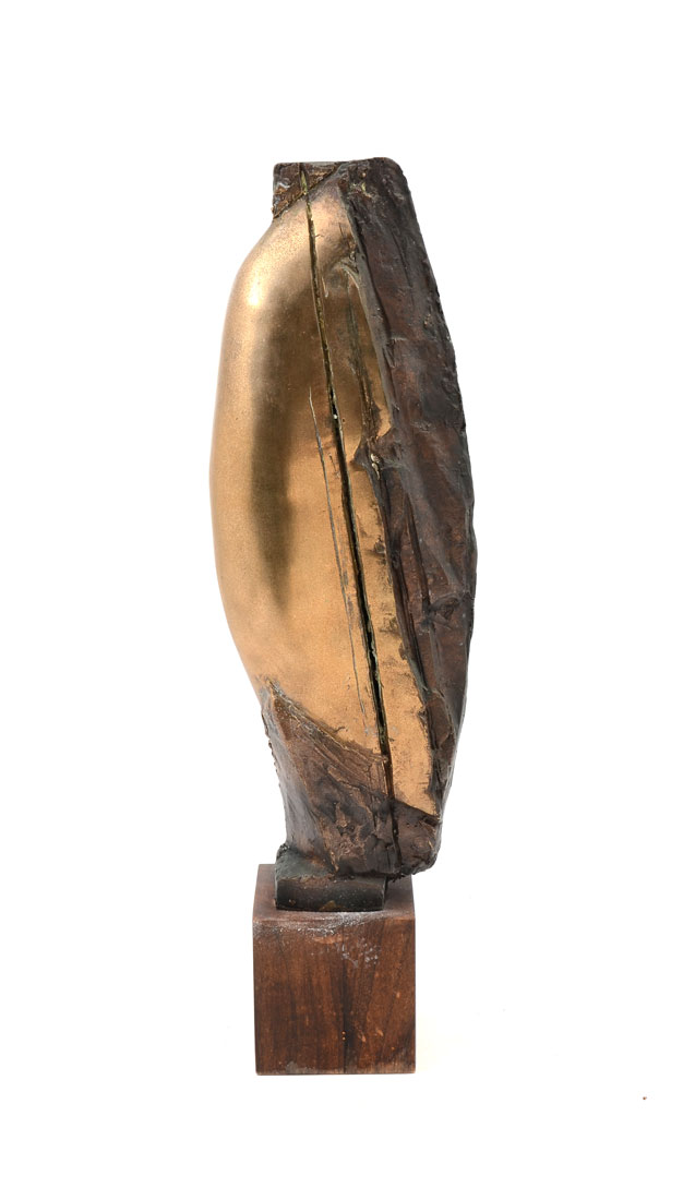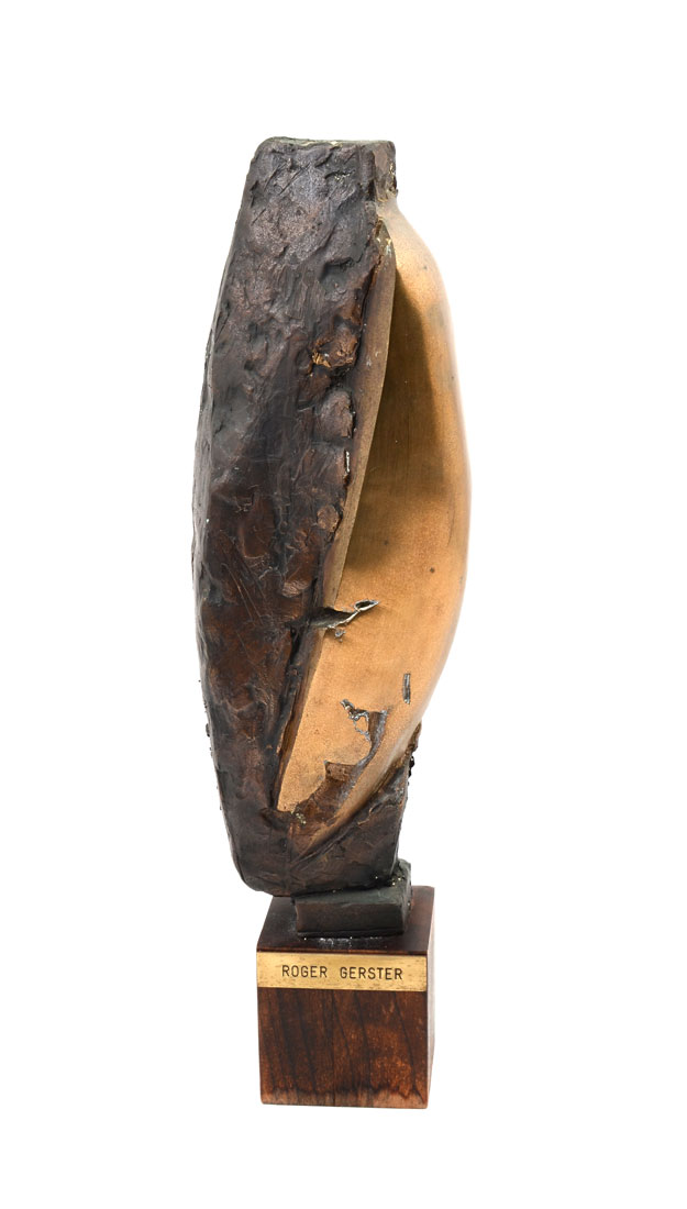 GERSTER, Roger, (Swiss, 1939-): ''Abstract Composition'', Bronze, approximately 14.50'' in height, affixed to a wooden plinth, 18'' overall, signed near the base on the bronze.