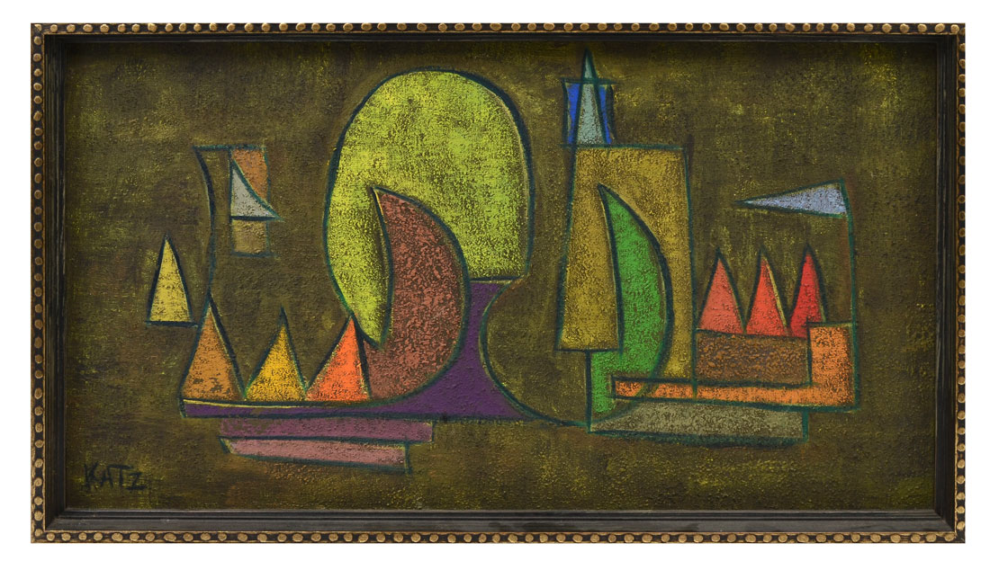 KATZ, William, (American, 1926-2003): ''Cubist Harbor Scene with Boats'', Oil/Canvas, sight size is 16'' x 28'', signed lower left, framed 17'' x 29.25''.