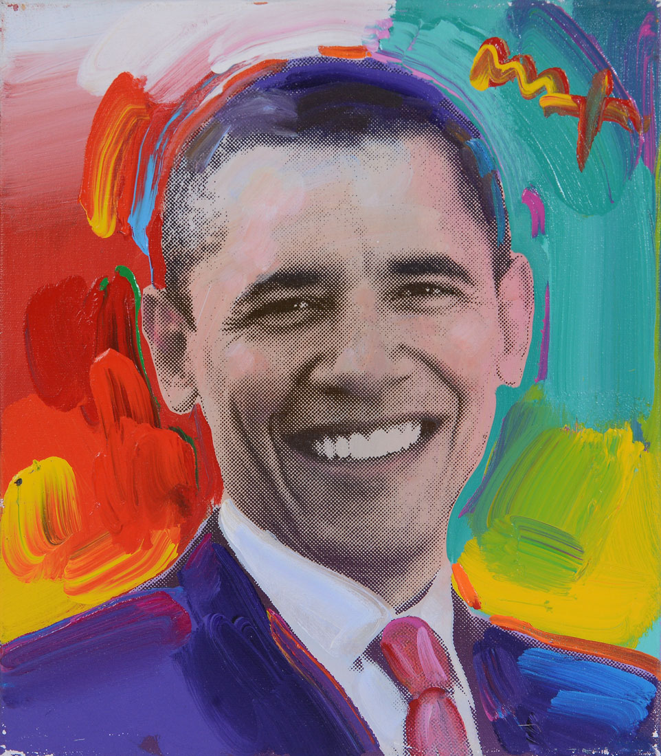 MAX, Peter (American, 1937- ): ''Obama to the Max'', Acrylic/Lithograph on Canvas, sight size is 16'' x 14'', signed by the artist on the upper right.