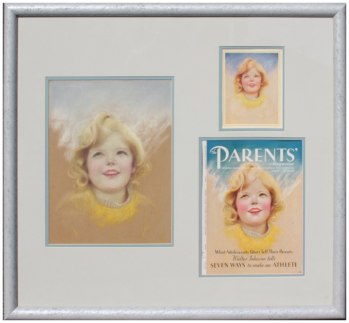 SHELDON, Charles Gates, (American, 1889-1960): Illustration for ''Parents'' magazine, Pastel, sight size is 14'' x 10.50'', included in the frame is a photograph of the original artwork as well as cover of magazine, frame size measures 27'' x 31''.