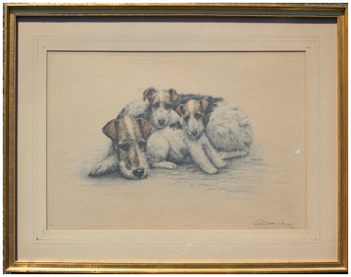 DANCHIN, Leon, (French, 1887-1938): ''Terrier Family'', Etching, sight size is 15.50'' x 23.75'', pencil signed lower right, framed 23.50'' x 32''.