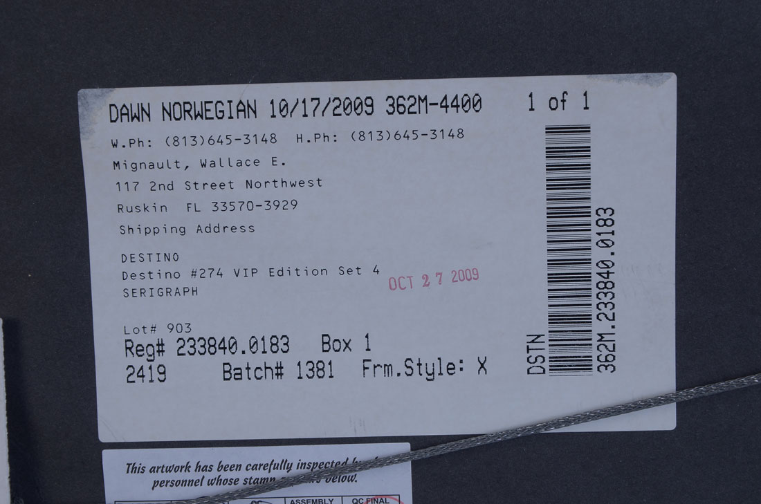 DESTINO SERIGRAPH AFTER DALI AND DISNEY, ''Destino #274 VIP Edition Set, Four Serigraphs, sight size is 12.75'' x 17.75'', blind stamp lower left, titled 274, signed by Roy Disney and numbered 61 of 195 VIP Edition, custom framing is 27'' x 32''.