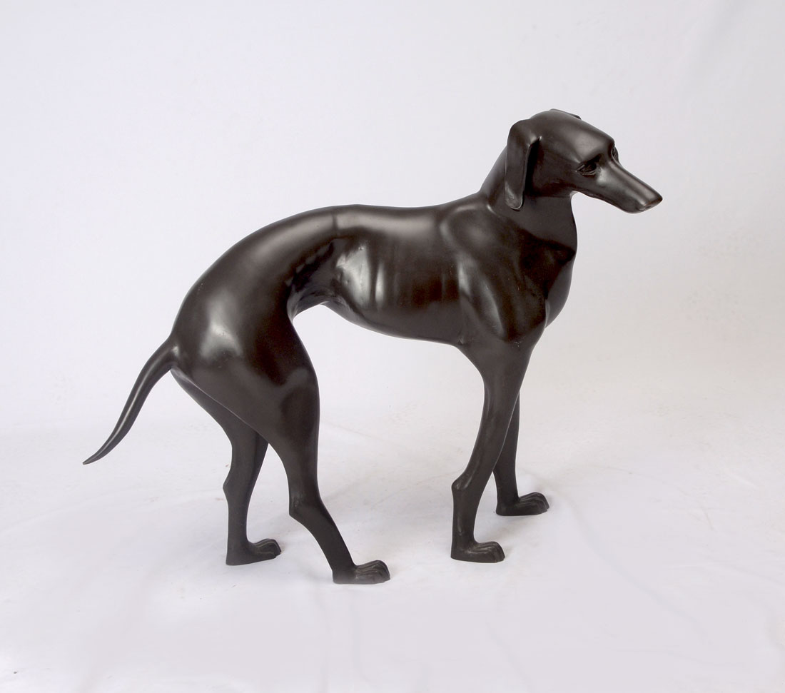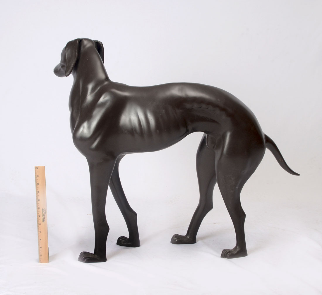 LARGE CONTEMPORARY CAST BRONZE WHIPPET: Bronze, 27.50'' in height x 35'' in width.