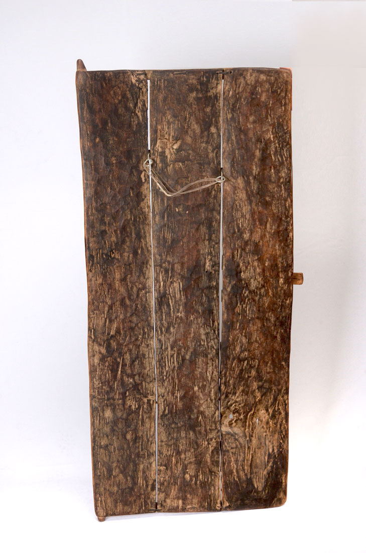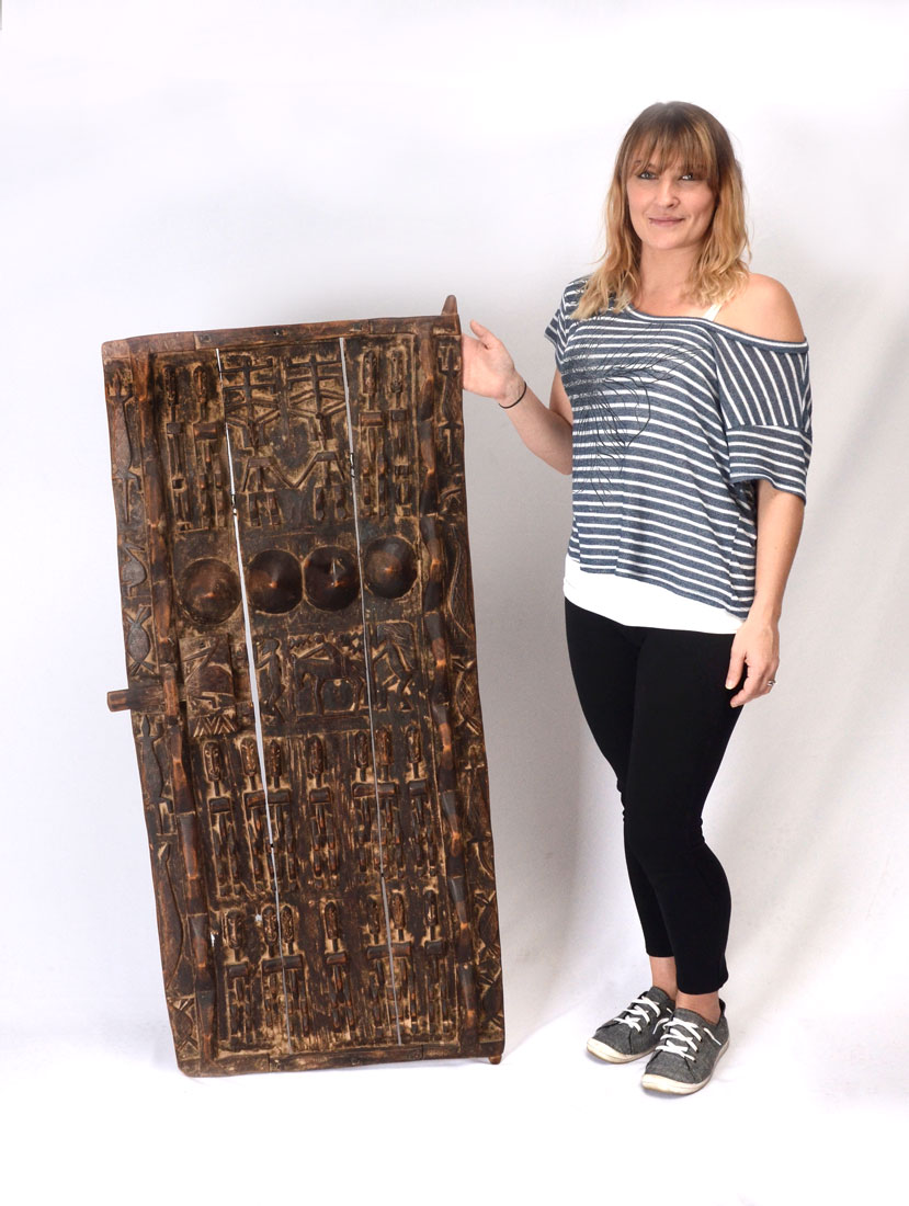 WEST AFRICAN DOYON CARVED WOOD SHUTTER: 3 panel carved wood shutter with carved figures of a Royal Court, Doyon culture, Mali, 48'' h. x 22''. 20th Century.