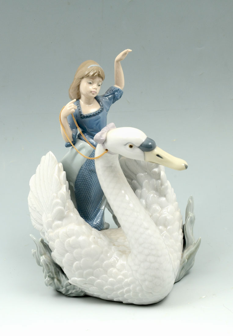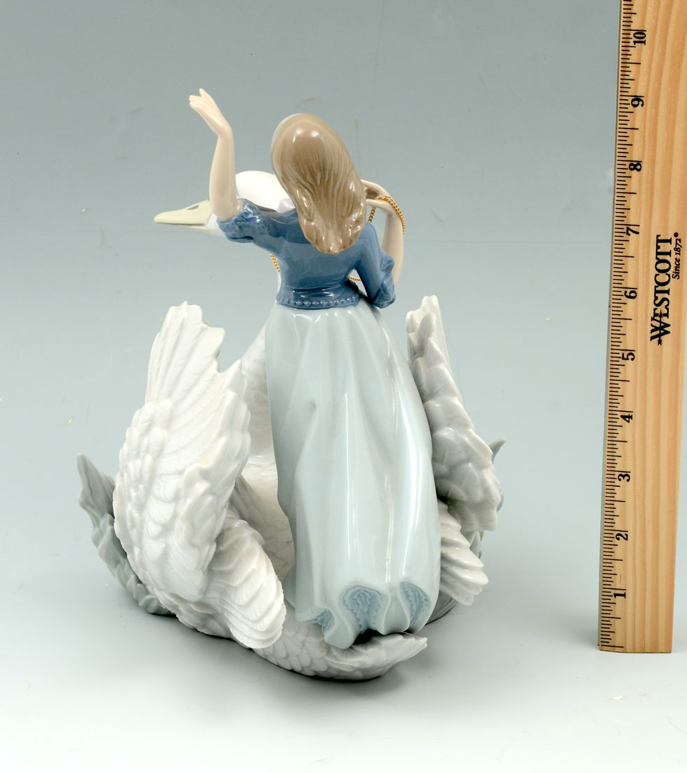 LLADRO SWAN AND THE PRINCESS 5705 PORCELAIN FIGURINE: Spanish name ''Cisney y Princesa'', sculptor Rafael Lozano, retired 1994, 9 1/4'' h.