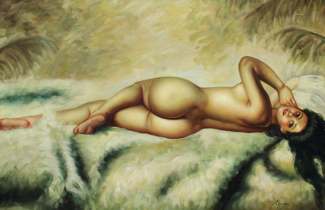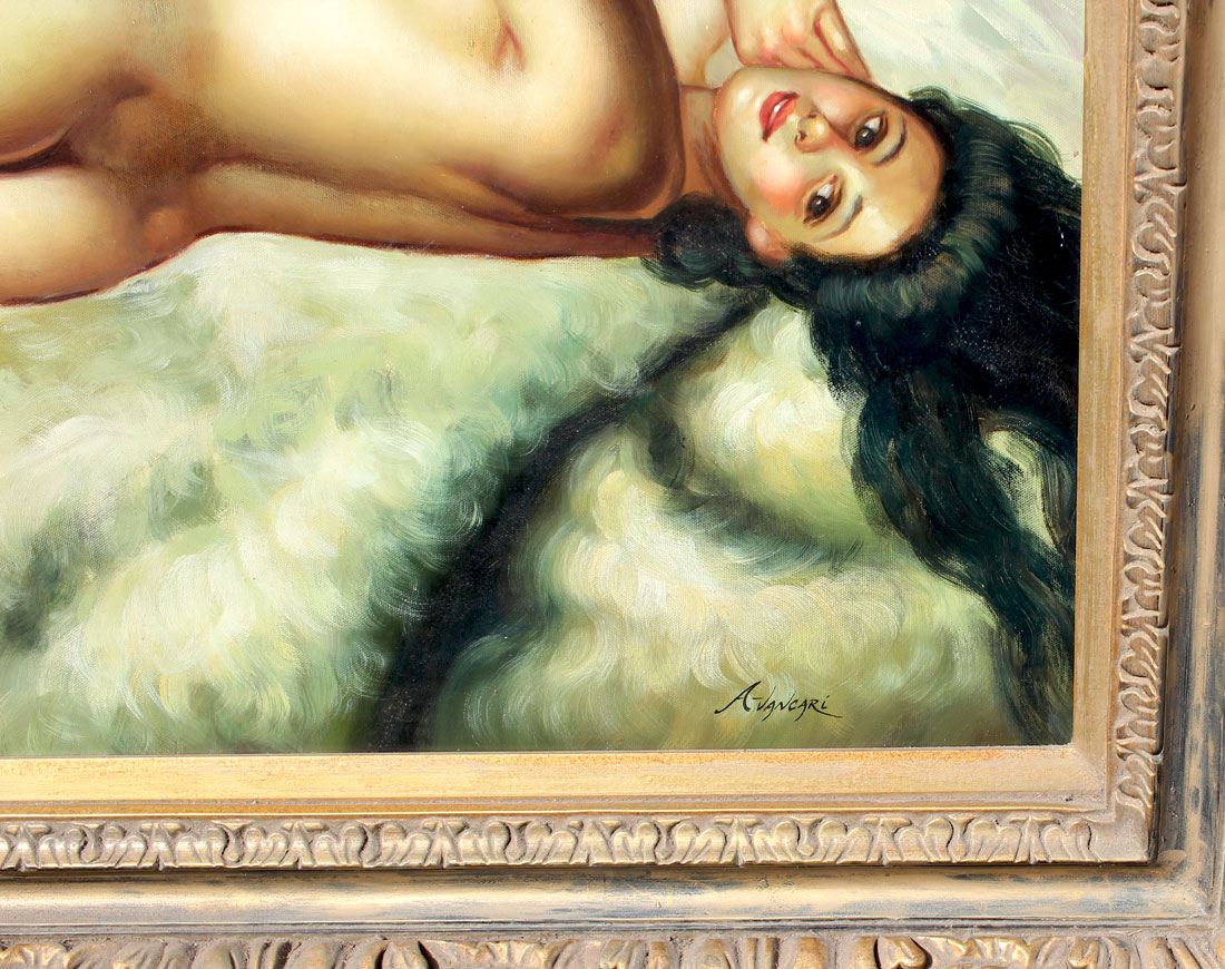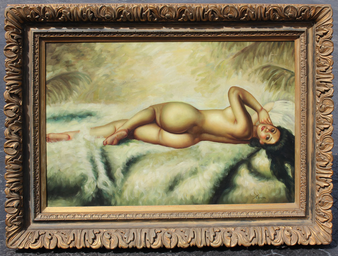LARGE CONTEMPORARY FEMALE NUDE PAINTING: Oil/Canvas, sight size is 24'' x 36'', framed 34'' x 46''.
