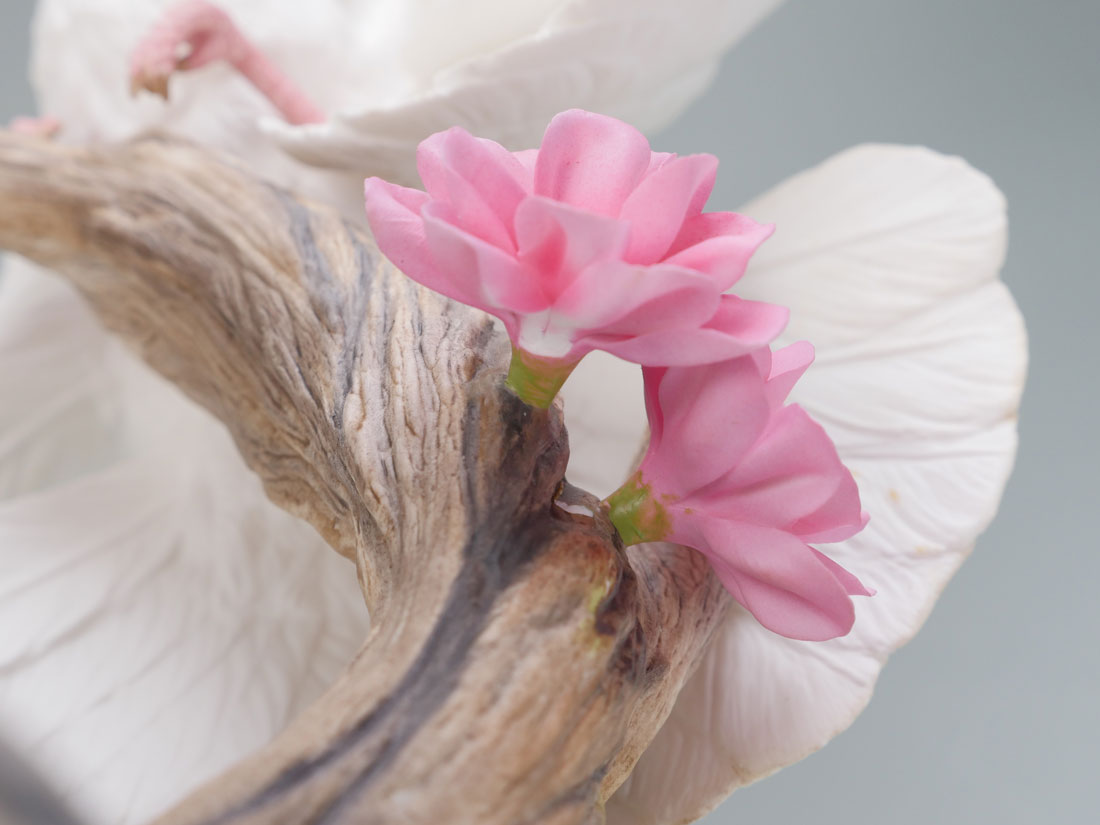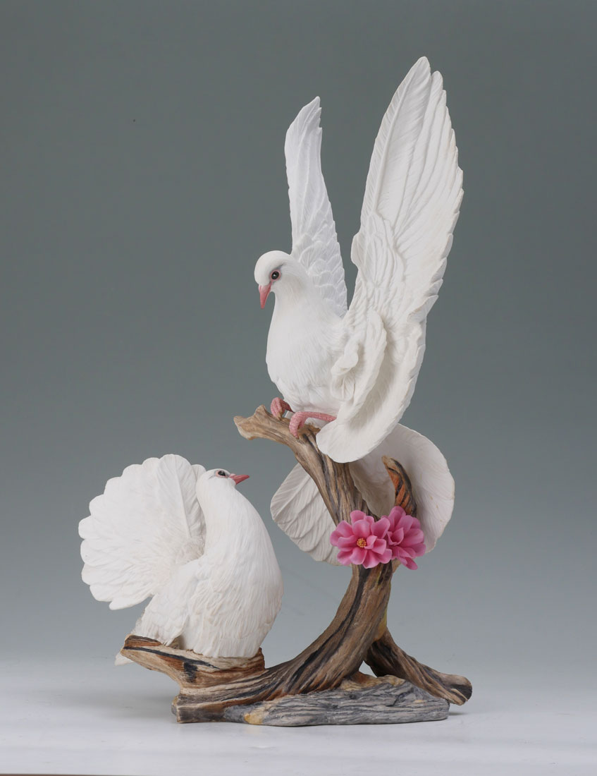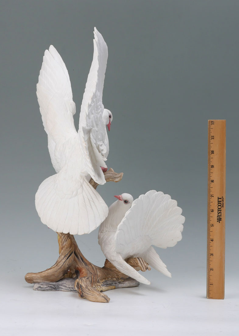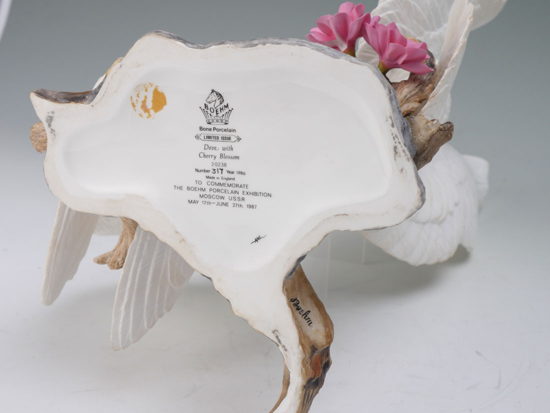 BOEHM DOVES WITH CHERRY BLOSSOM PORCELAIN FIGURAL GROUP: Commemorates the Boehm porcelain exhibition in Moscow, USSR in 1987. Limited Edition #317. Measures approx. 19'' tall x 12''. Made in England.