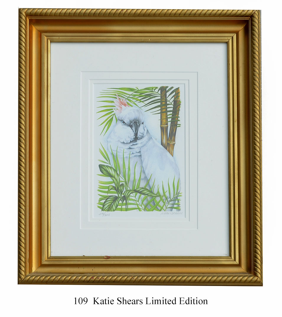 Katie Shears Limited Edition Cocatoo Print: Signed, numbered 276/325
