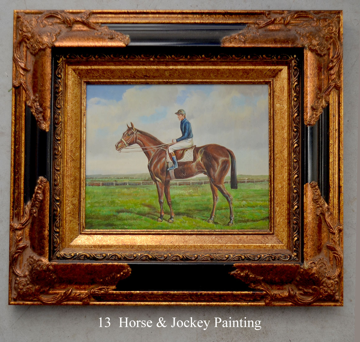 Contemporary Equestrian O/B: Horse and Jockey, 8'' x 10''. Encased in contemporary classical style frame