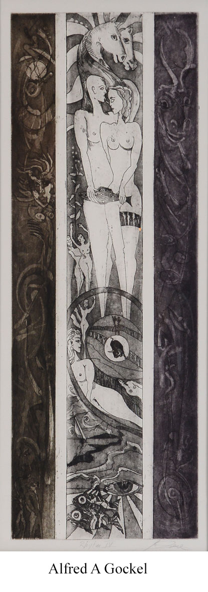 GOCKEL, Alfred Alexander (German 1952- ): ''Rhythm IV'', Aquatint on Hand-woven Paper, sight size is 28'' x 9.75'', signed in pencil, edition of 50 from two plates.