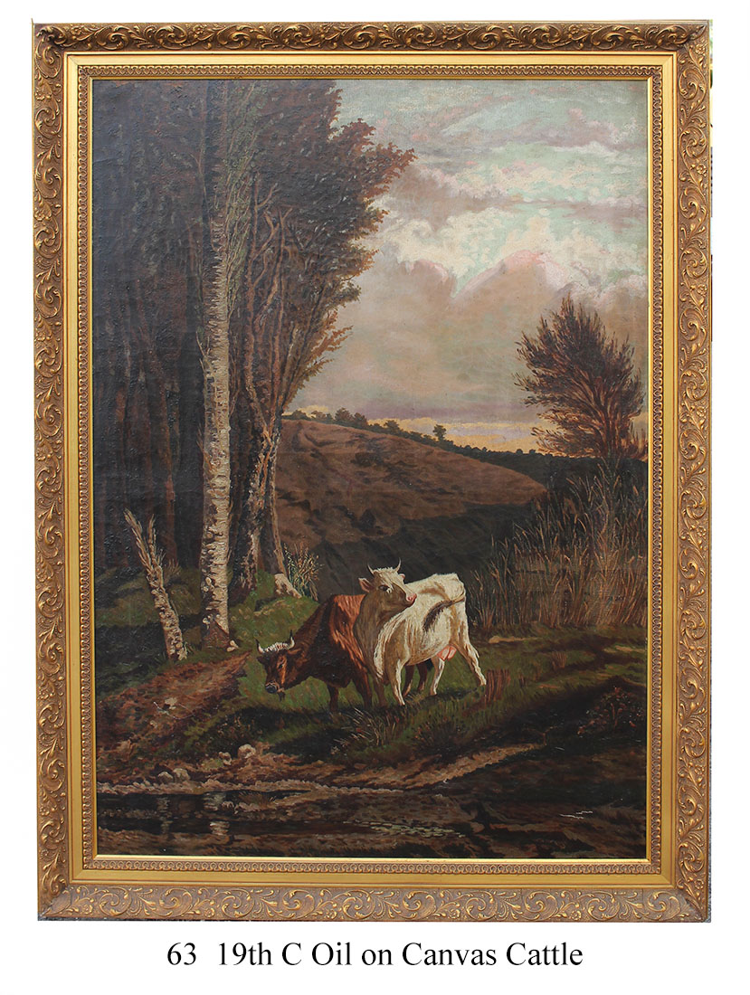 19TH CENTURY ATMOSPHERIC PAINTING WITH CATTLE: Oil on Canvas, 40.75'' x 28.5'', no visible signature, framed 47'' x 34.5''.