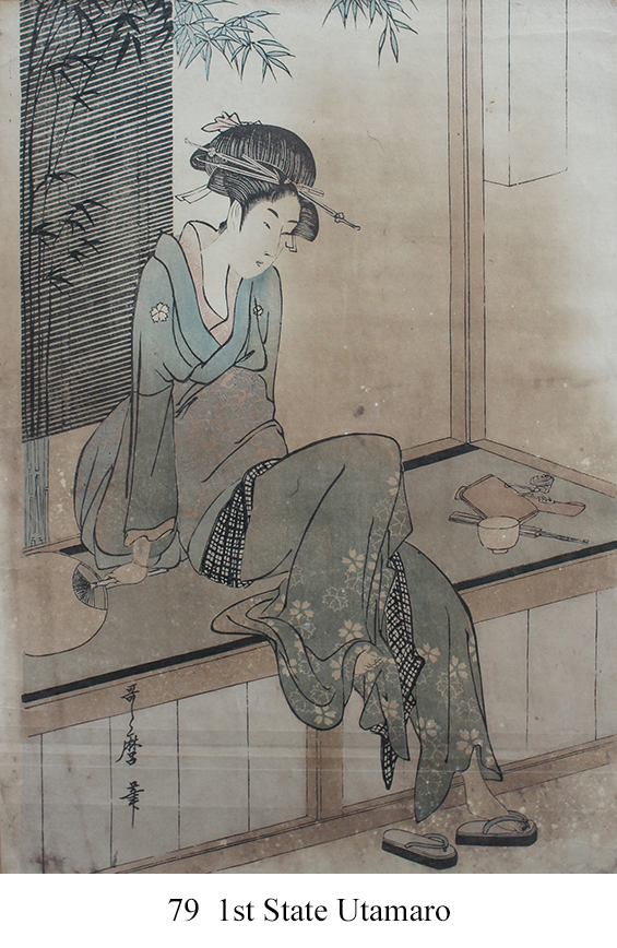 1ST STATE UTAMARO I SEATED BEJIN LIFETIME EDITION WOODBLOCK: Size with margin 14.75'' X 10.5''.