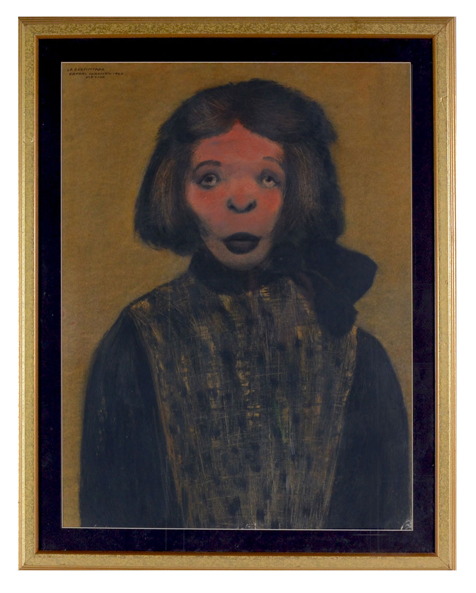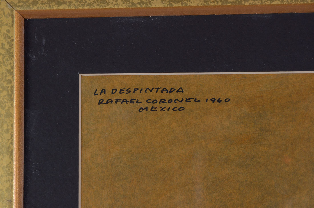 CORONEL, Rafael, (Mexican, 1932- ): ''La Despintada'', Mixed Media with Pastel, sight size is 24.50'' x 18.75'', signed upper left, titled and dated 1960, marked Mexico, framed 30'' x 24''.