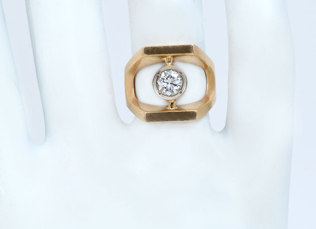 14K .50 CT DIAMOND RING: 14K yellow gold ring contains 1 round brilliant cut diamond. WEIGHT: .50 Ct. Approx. Rated VS1 in clarity and I in color. The diamond is prong set. Weight: 7.7 grams. Size: 4.5