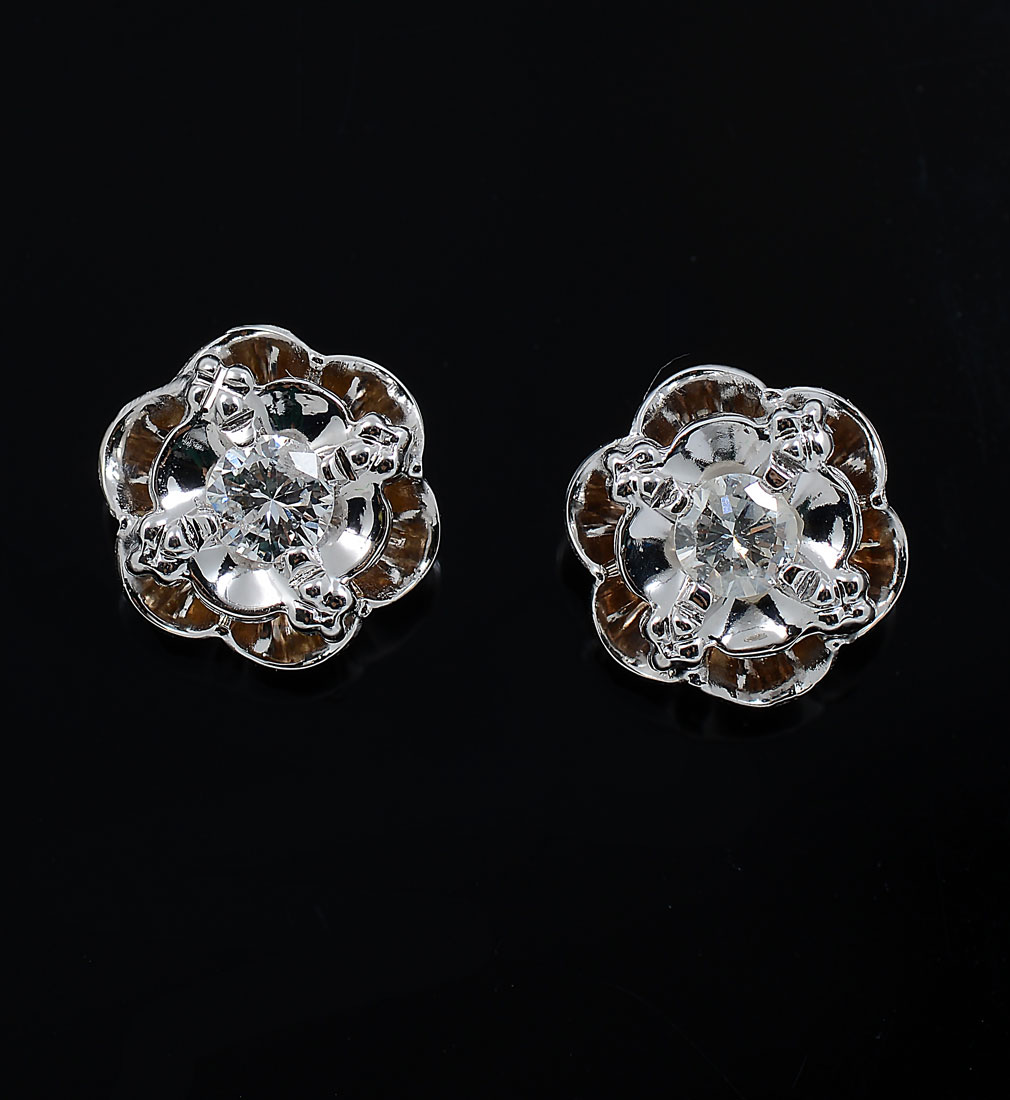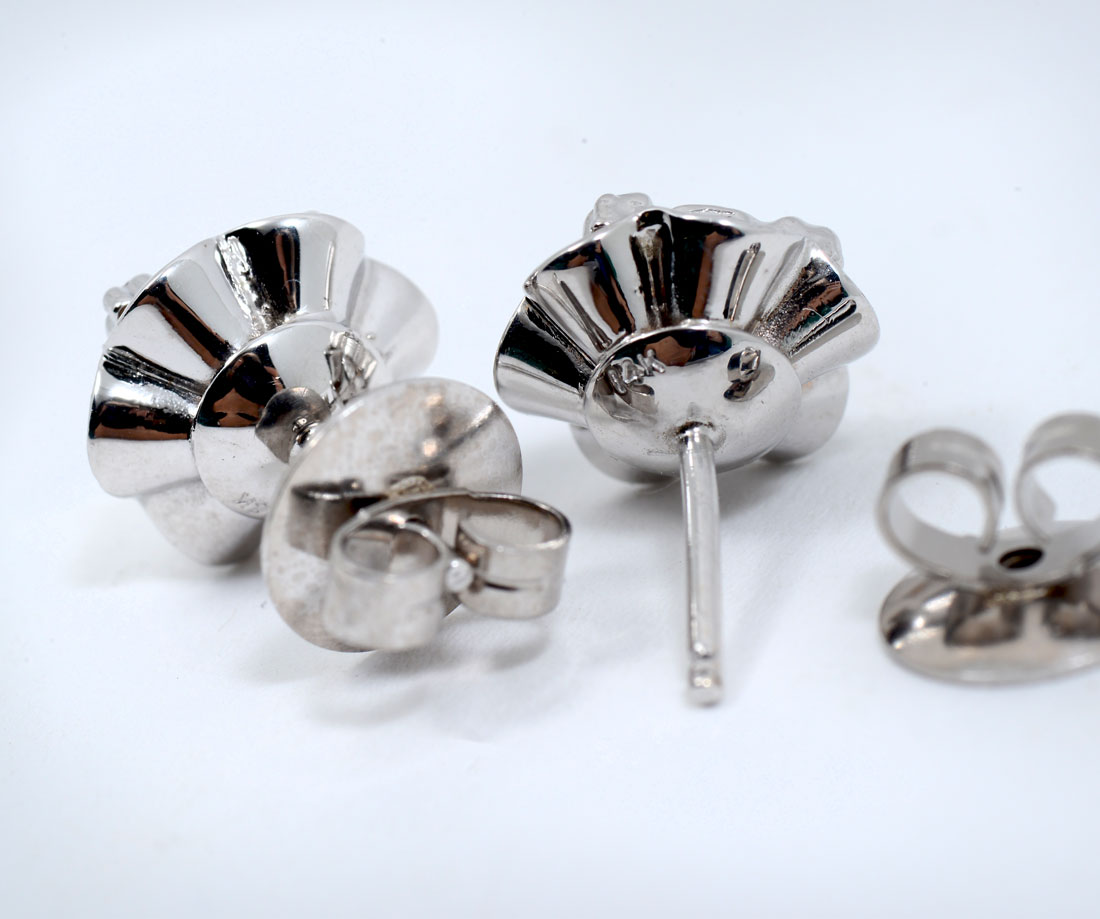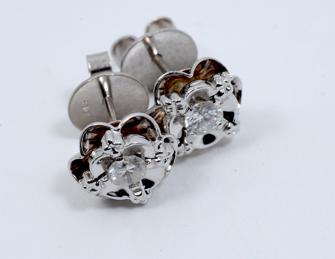 14K .40 CTW DIAMOND STUD EARRINGS: Double buttercup white gold earrings set with 2 round brilliant cut diamonds. SI-2 in clarity and eye clean. Friction backs for easy wear.