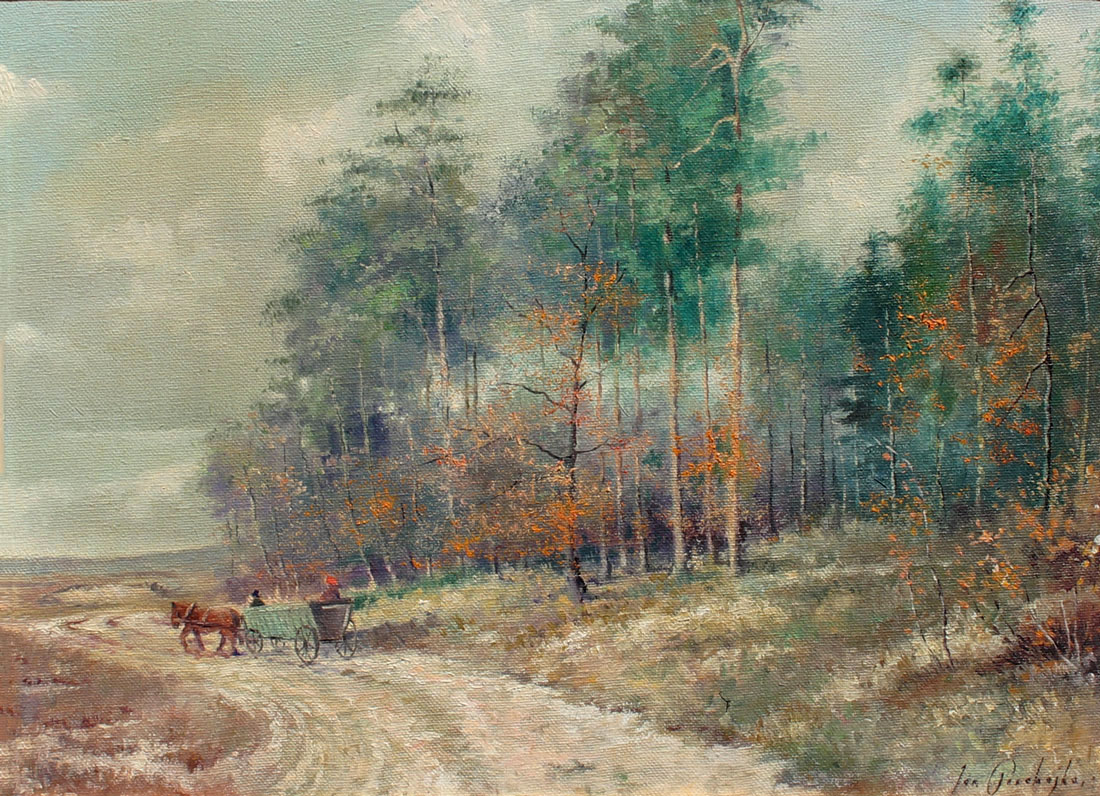PROCHAZKA, Josef, (Czech, 1909-1984): Landscape with Horse and Cart Travelling a Path, Oil/Canvas, 12'' x 16'', signed lower right, framed, 19'' x 23''.