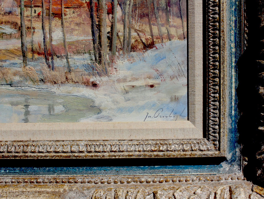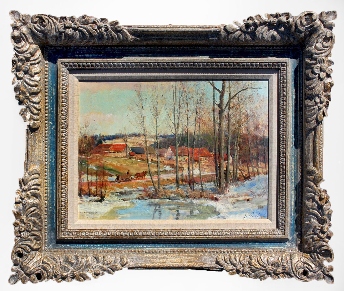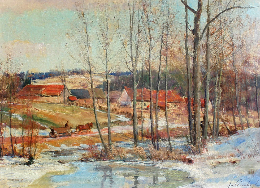 PROCHAZKA, Josef, (Czech, 1909-1984): Early Winter Village Scene, Oil/Canvas, 12'' x 16'', signed lower right, framed, 21'' x 26''.