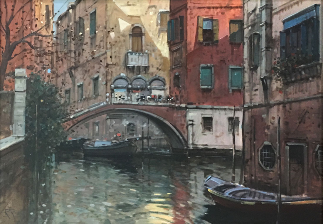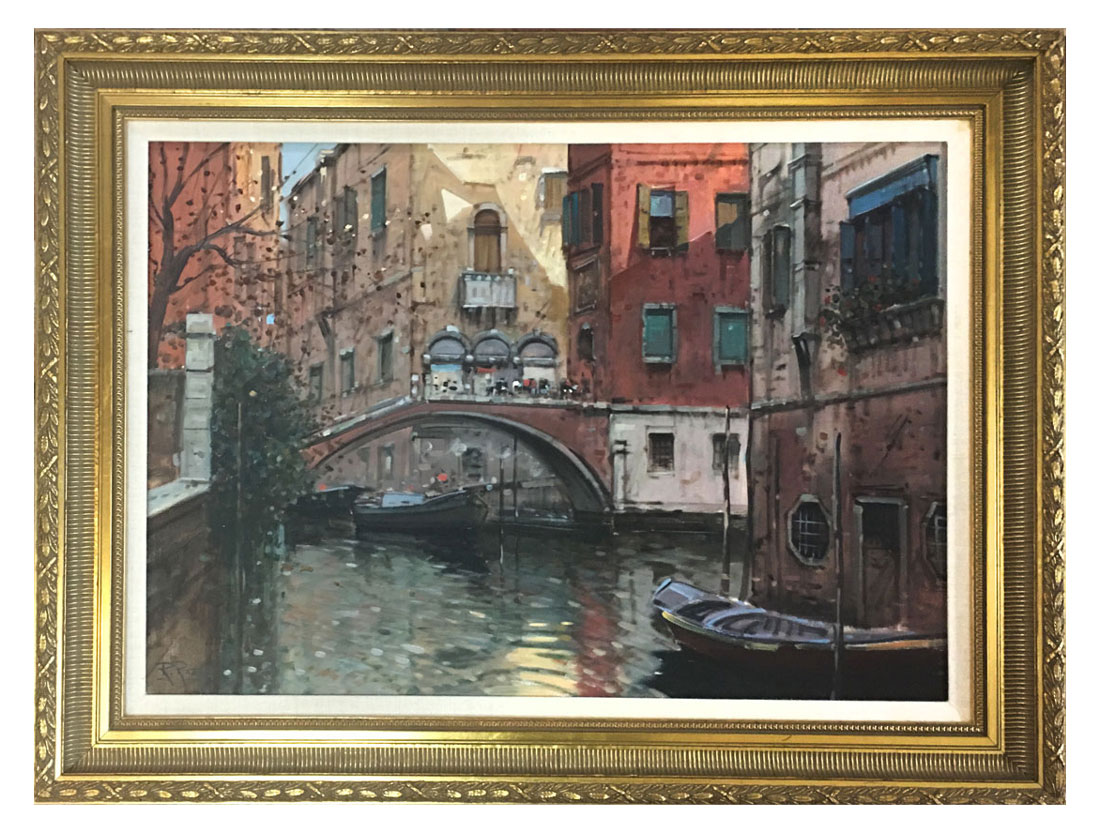 ROBERTI, Raimondo (Italian, 1947-): Canal in Venice, Oil/Canvas, 19'' x 27'', signed lower left, framed, 25'' x 33''.