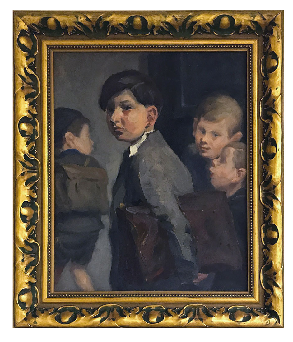 VILLAIN, Pierre, (French, 20th Century): ''Young School Boys'', Oil/Board, sight size is 16'' x 12'', signed lower right, carved frame is 20'' x 17''.