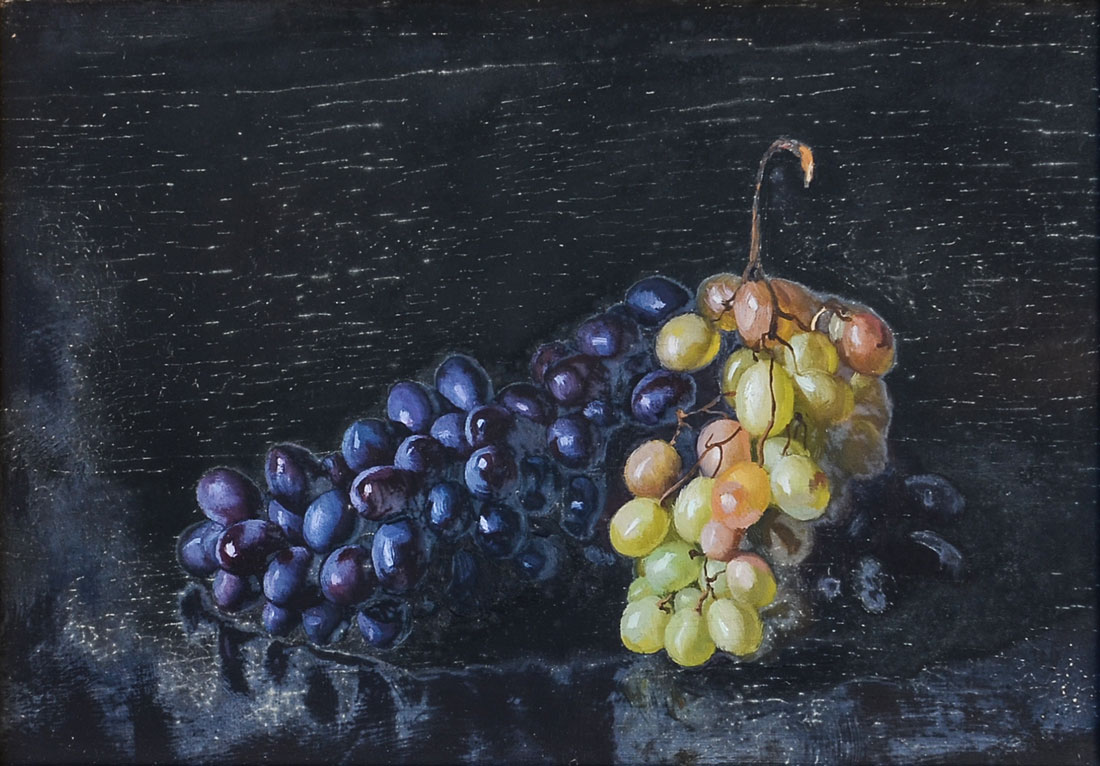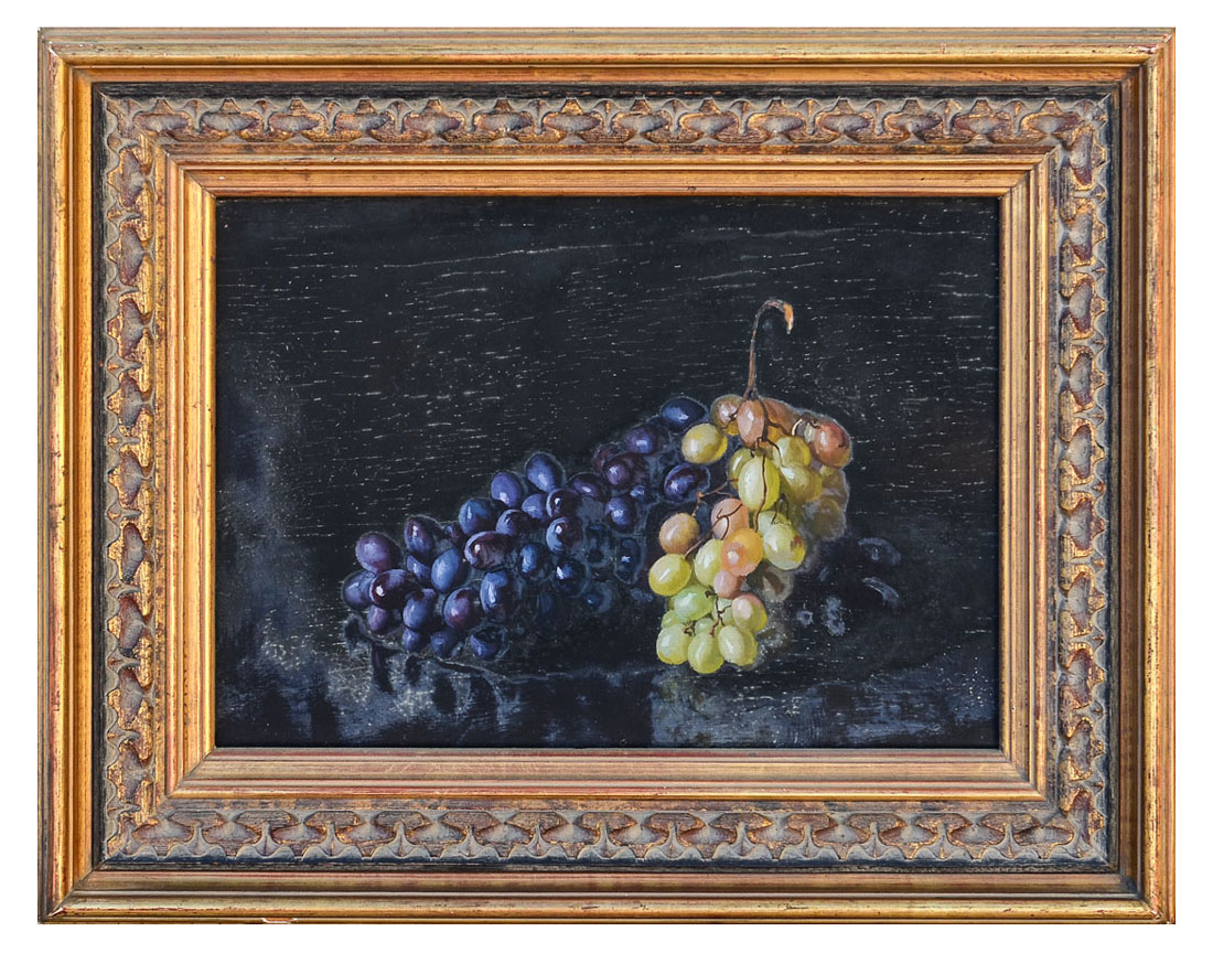 STILL LIFE PAINTING OF GRAPES BY BRIONES: Oil/Board, sight size is 13.50'' x 18'', gilded frame is 19'' x 23.50''.