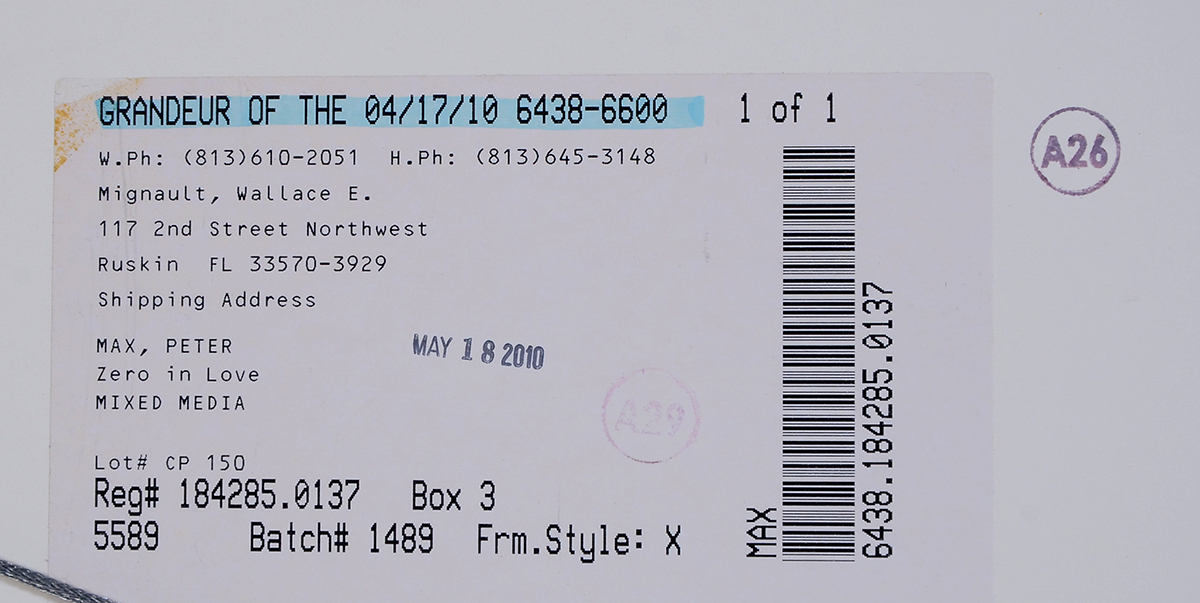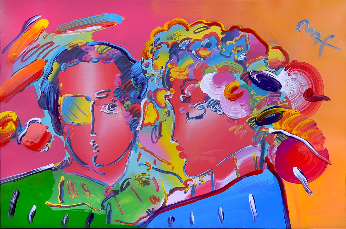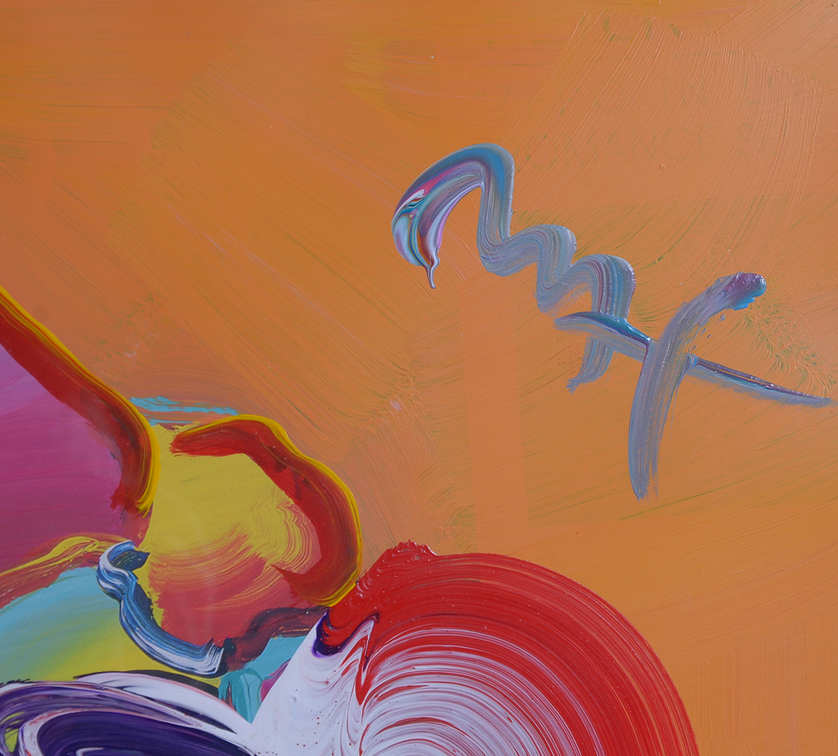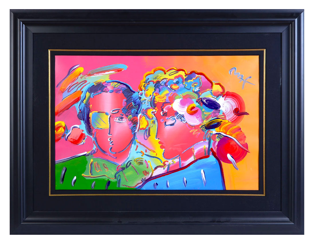 PETER MAX MIXED MEDIA ''ZERO IN LOVE'': sight size is 23'' x 34.50'', signed upper right, fine custom framing is 39.50'' x 51''.