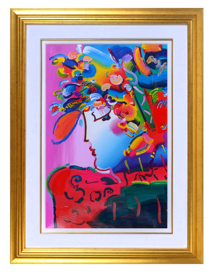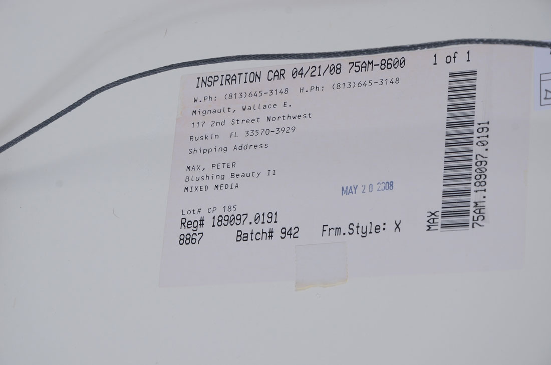 PETER MAX MIXED MEDIA ''BLUSHING BEAUTY II'': Mixed Media, sight size is 35'' x 23'', signed upper right, framed 48'' x 38''.