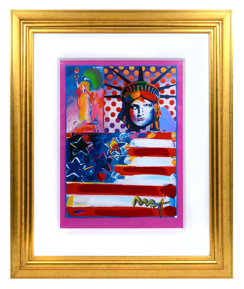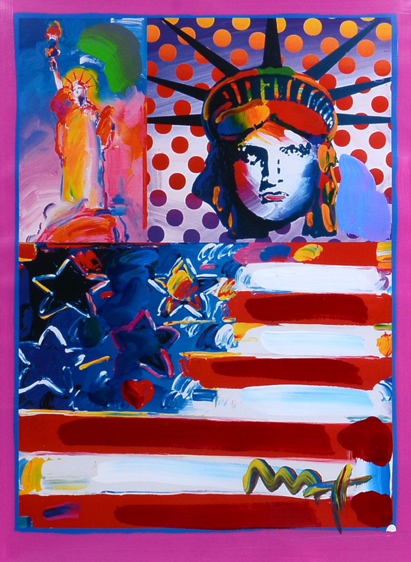 MAX, Peter, (American, 1937- ): ''God Bless America II'', Mixed Media, sight size is 23'' x 17'', signed lower right, custom frame is 37.50'' x 31.50''.