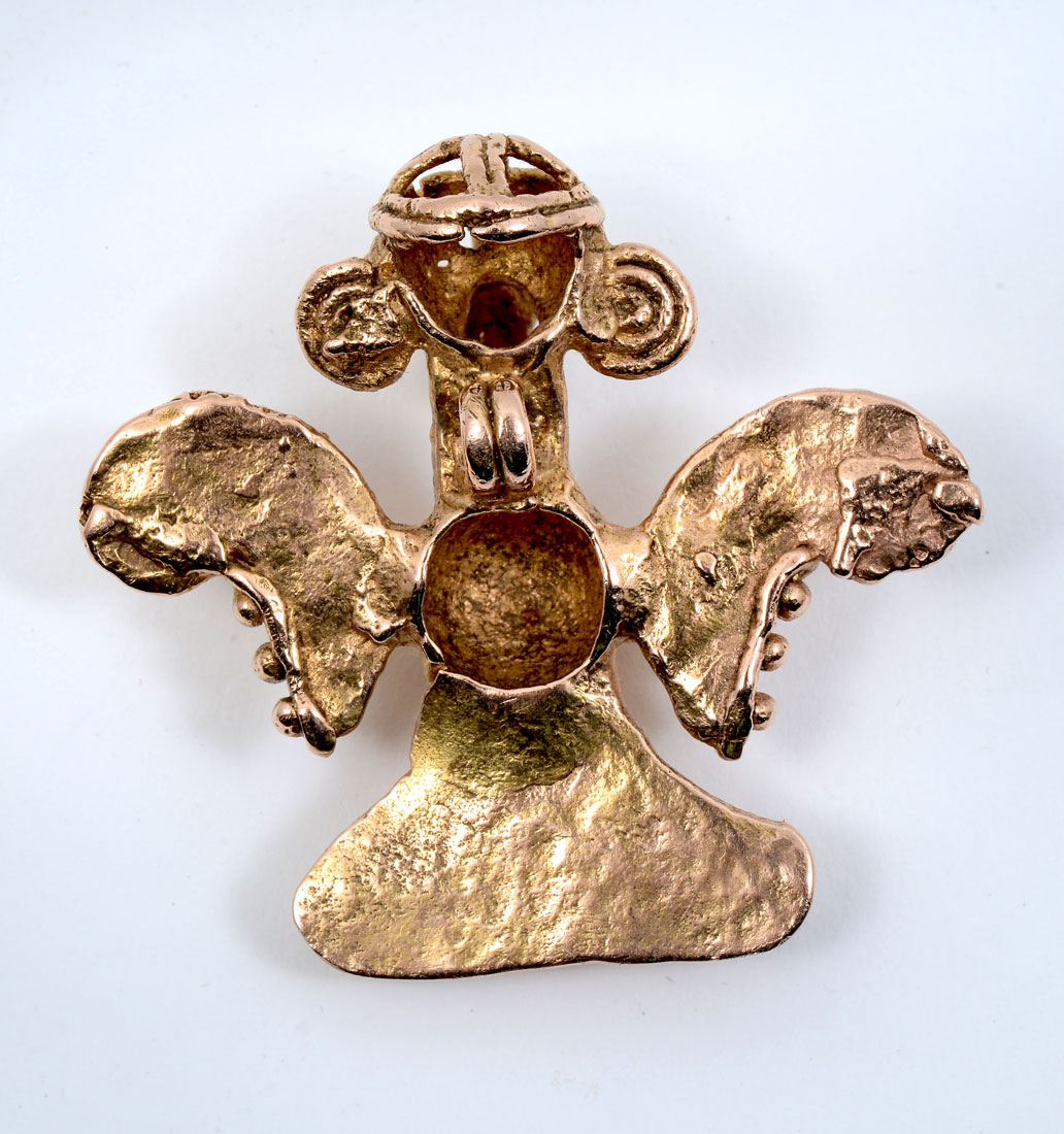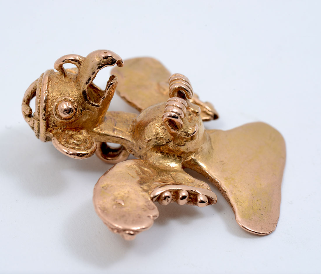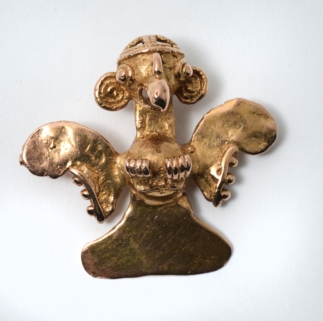 17K GOLDEN HUACA CONDOR GOD PENDANT: Golden Condor God of Panama as legend has it, the Guardian of the pass, would soar high above and hurl lightning bolts causing boulders to fall on those who attempted to pass. 33.6 grams