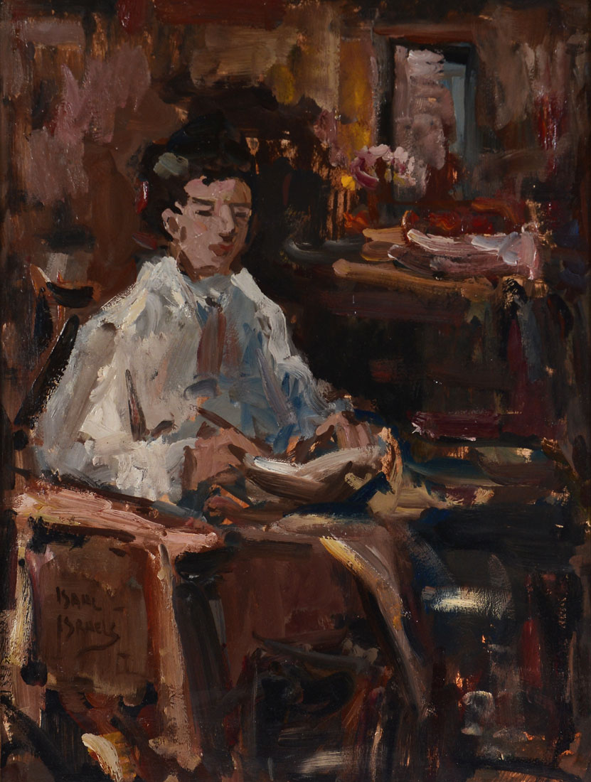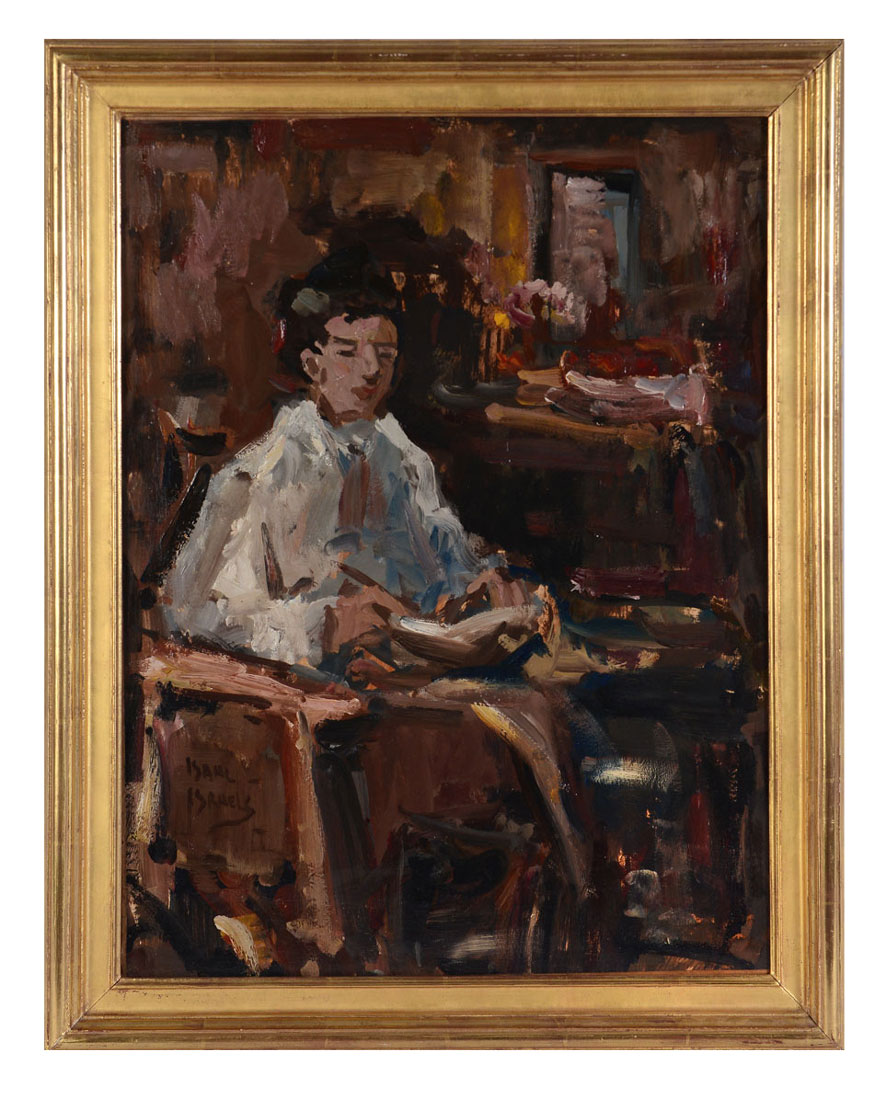 ISRAELS, Isaac, (Dutch, 1865-1934): Man Reading in an Interior, Oil/Canvas, 23.5'' x 17.75'', signed lower left, fine gilded frame, 27'' x 21.5''.
