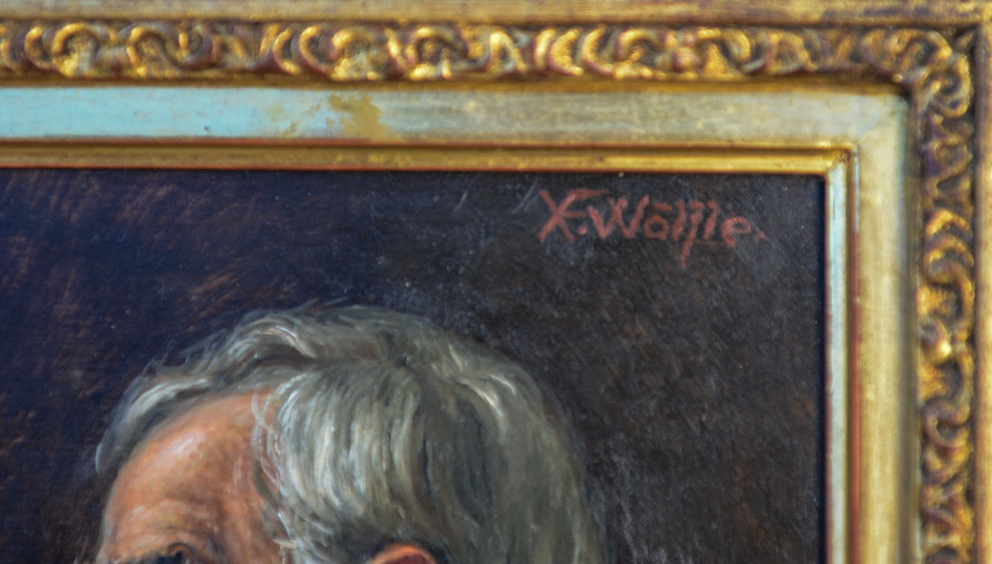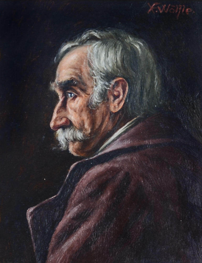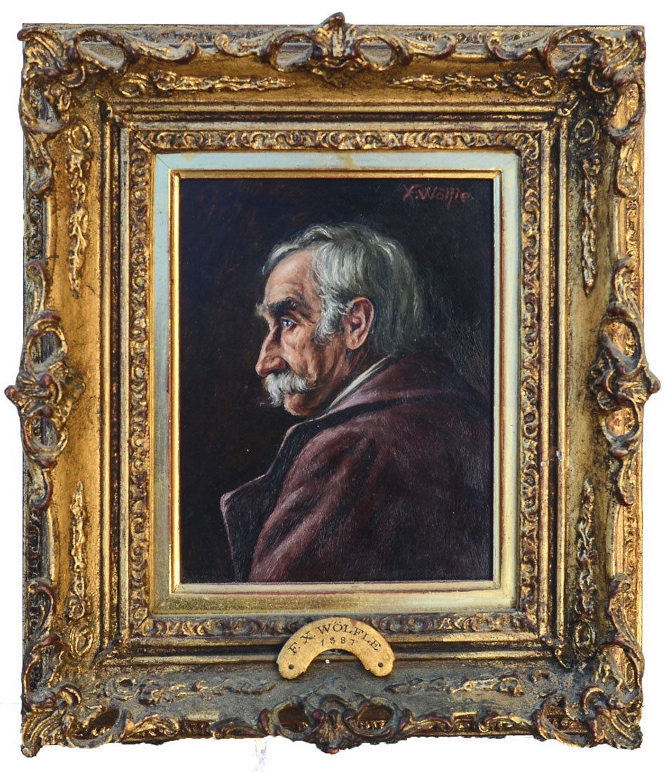 WOLFLE, Franz Xavier, (German, 1887-1972): ''Portrait of an Elderly Man with Mustache'', Oil/Board, sight size is 7'' x 5.50'', signed upper right, framed 11.50'' x 10''.
