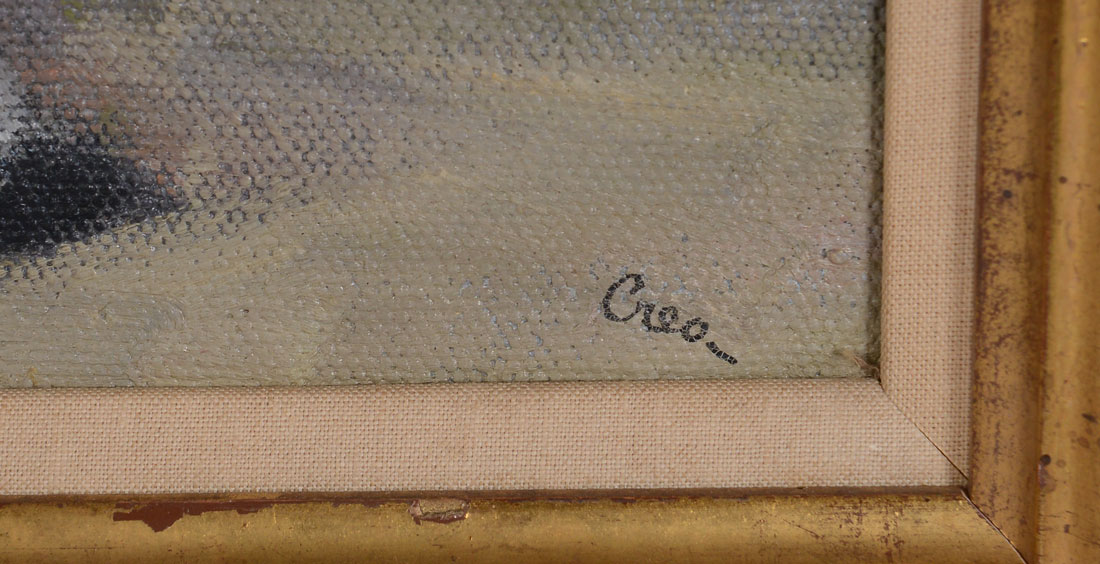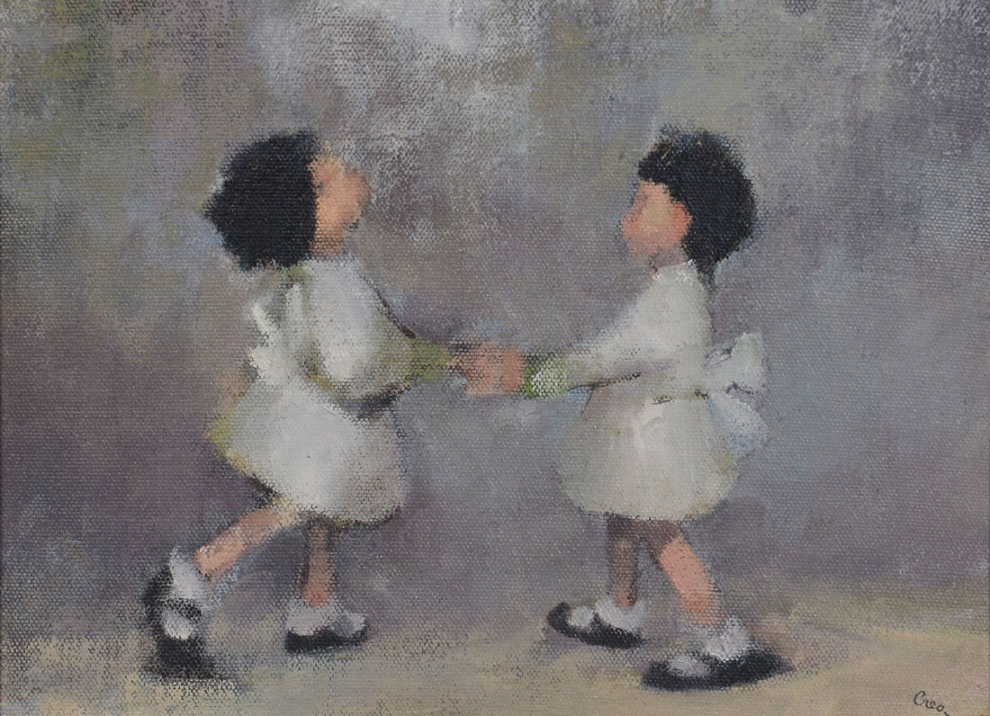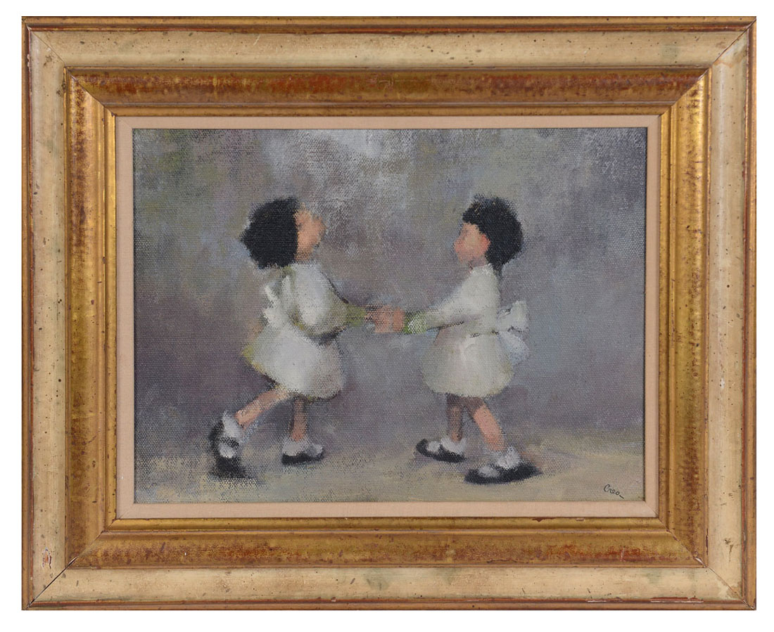 CREO, Leonard, (American, 1923- ): ''Two Young Girls Playing'', Oil/Canvas, sight size is 12'' x 16'', signed lower right, framed 18.50'' x 22.50''.