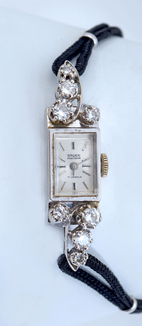 14K GRUEN 1.00 CTW DIAMOND WRISTWATCH: 14K Gruen mechanical wristwatch with (8) round brilliant cut diamonds. WEIGHT: 1.00 Ct. Approx. Rated VS in clarity and G-H in color. Currently not running. Gold Weight: 7.0 grams approx.