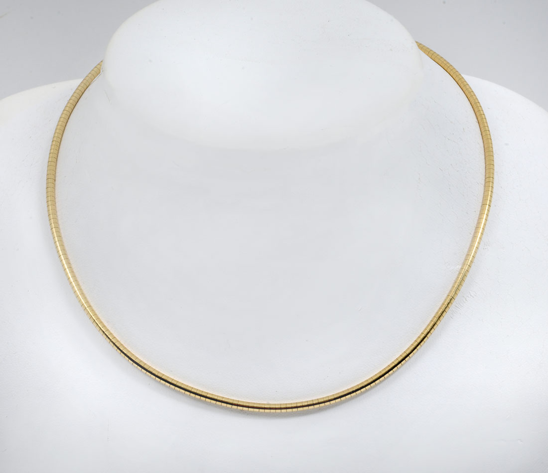 14K SOLID GOLD SNAKE CHOKER: 16'' yellow gold choker is simple and classic. Lobster clasp. Weight 21.1 grams.
