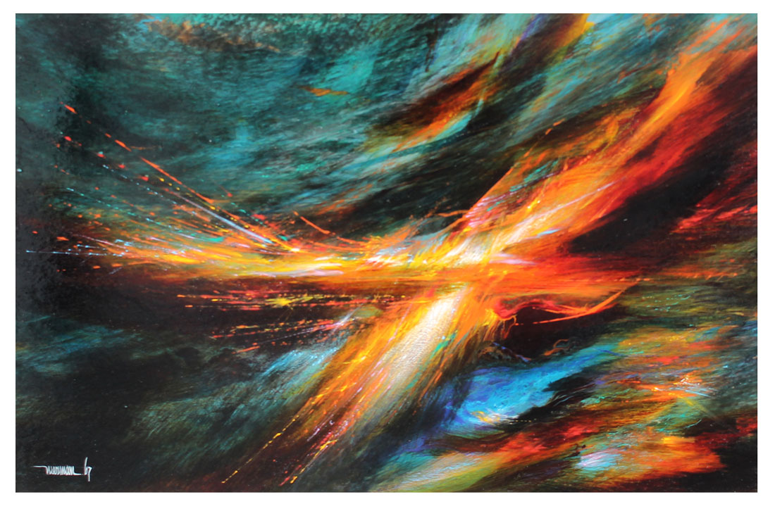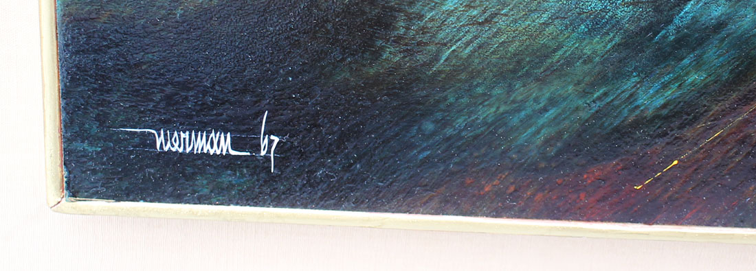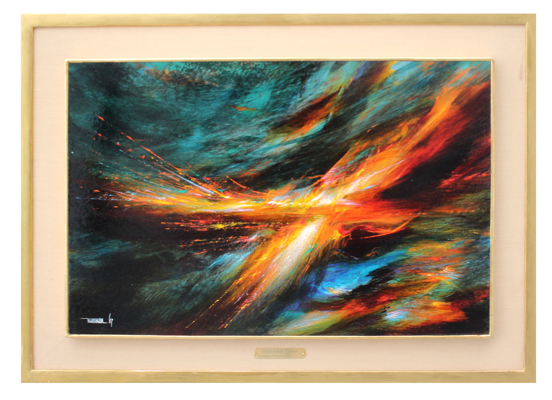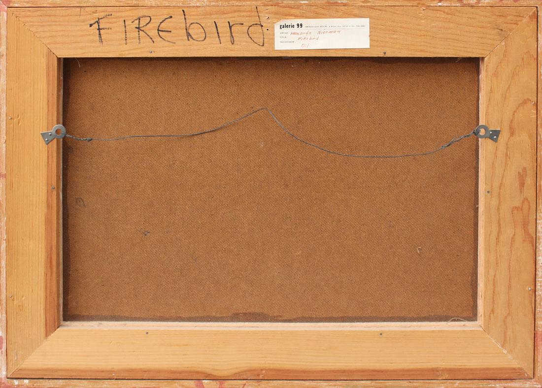 NIERMAN, Leonardo, (Mexican, 1932- ): ''Firebird'', Oil/Masonite, sight size is 15'' x 23'', signed lower left and dated '67, original gilded frame is 21.75'' x 29'', Galerie 99 label affixed verso.