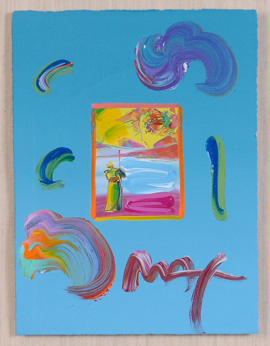 PETER MAX MIXED MEDIA ''SAGE AND PROFILE 2009, VERSION 1 NUMBER 4'': Mixed Media, sight size is 11'' X 8.25'', signed and framed 27'' x 24''.