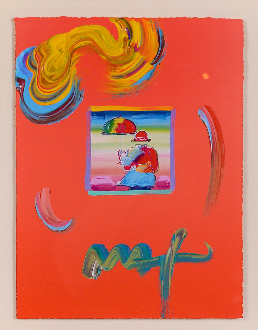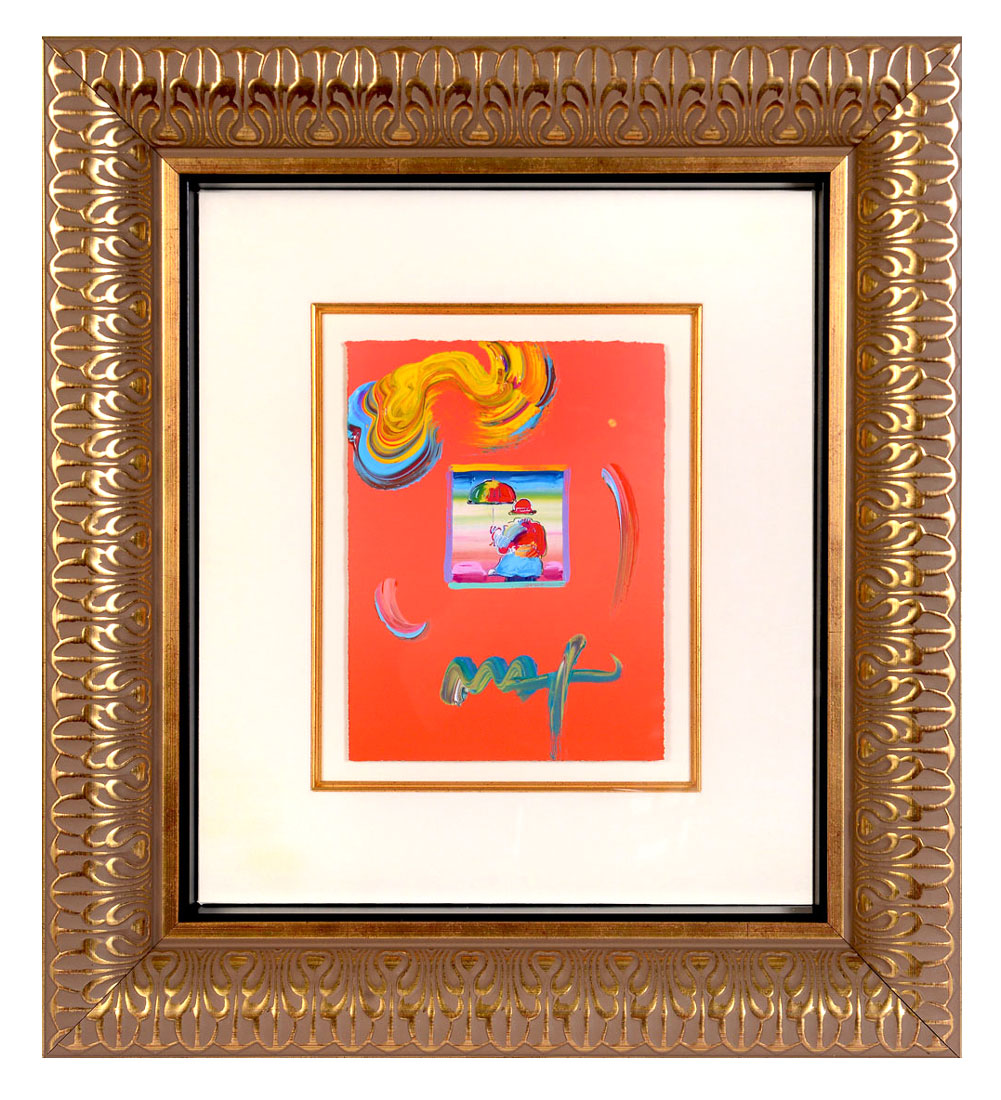 PETER MAX MIXED MEDIA ''UMBRELLA MAN VERSION 1 NUMBER 48'': Mixed Media, sight size is 11'' x 8.25'', signed and framed 27'' x 24''.