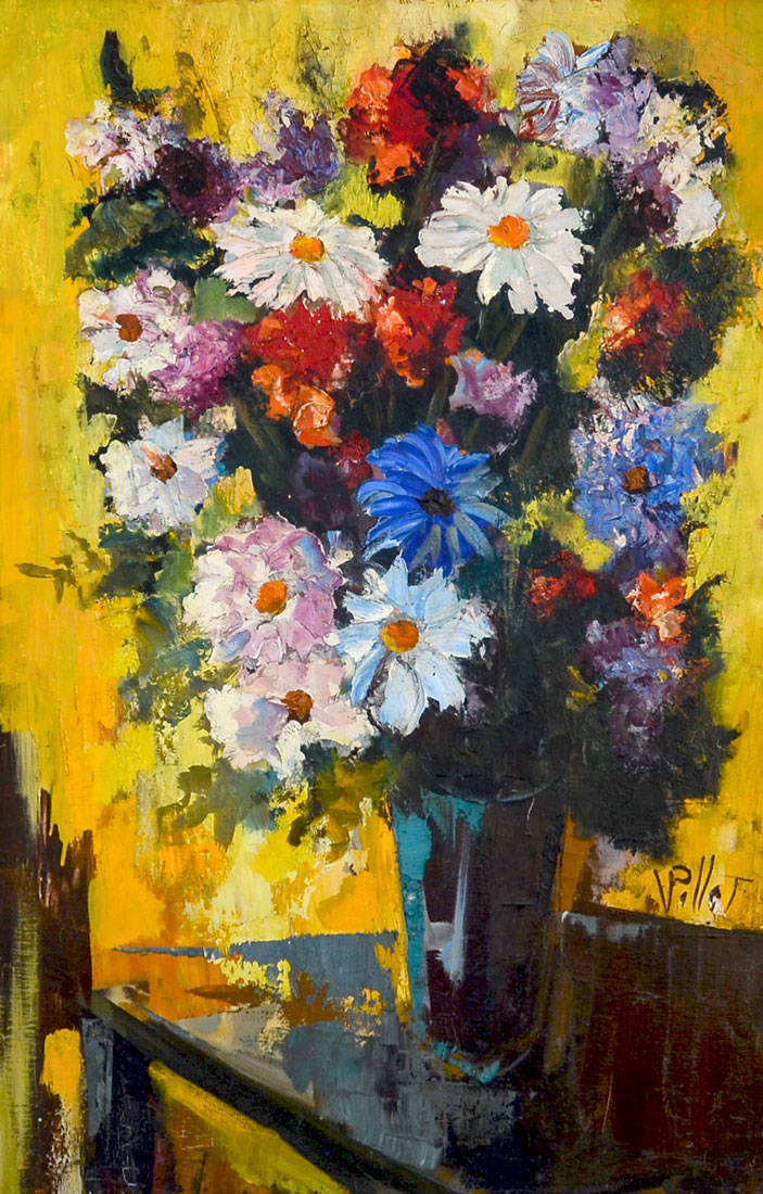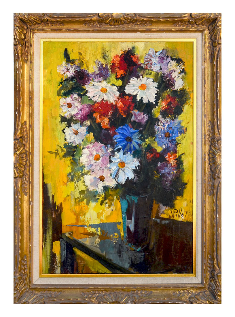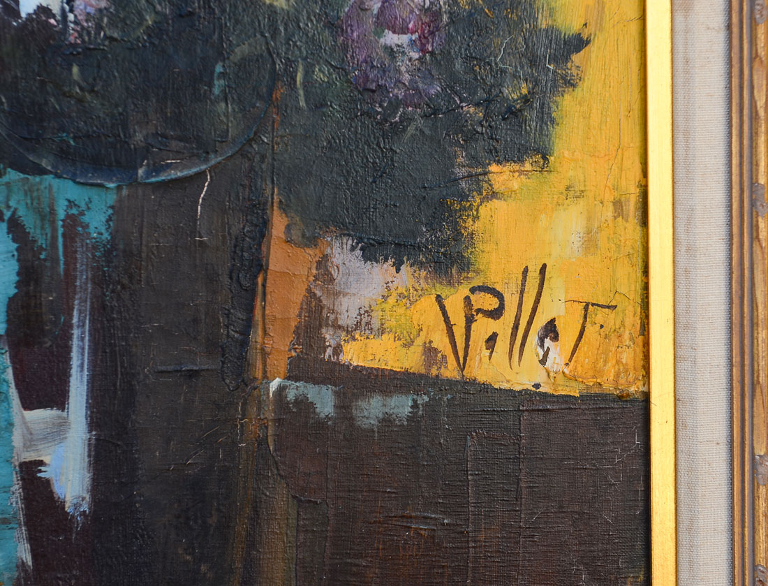 FLORAL BOUQUET STILL LIFE PAINTING V. PALLET: Oil/Canvas, sight size is 32'' x 21'', signed lower right, carved and gilded wood frame is 39.50'' x 28.50''.